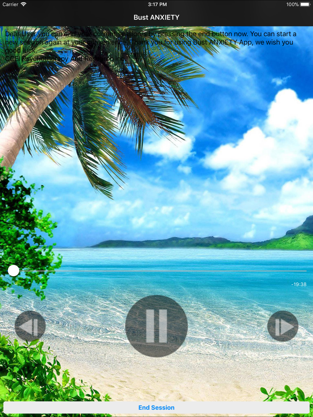 Bust ANXIETY App is a new Approach to treat ANXIETY Disorder. It is developed in Canada by CCEI Psychotherapy & Research Inc. for iPhone and iPad users. This app is designed to help people and specially Veterans who are living with ANXIETY Symptoms or have experienced Post Traumatic Stress Disorder. Bust ANXIETY App helps to reduce ANXIETY symptoms in a cost effective and time efficient manner. The beauty of Bust ANXIETY App; No Disclosure of Personal Information Required, No Need to Work Around Schedules for Appointment, it's Affordable, Reduces Symptoms and Improves Quality of Life. Bust ANXIETY App may also help people to deal with Depression and others symptoms complex, because untreated ANXIETY can be a contributing factor in a variety of mental health issues or conditions. Bust ANXIETY App helps to resolve underlying causes of these conditions and their associated symptoms. Bust ANXIETY App works on ANXIETY symptoms at neurological level; this app reduces avoidance behaviour, fear & worry, Irritability & edgy feeling, restlessness, sleep disturbance, muscle tension, fatigue and mind going blank in most of the cases, a typical ANXIETY symptoms complex according to DSM-5. This treatment approach is based upon Cognitive Behaviour Therapy, Behaviourist Approach, Somatic or Body Oriented Therapeutic Approach, Yoga and Meditation’s Grounding Techniques and Imagery Techniques. Bust ANXIETY App helps to deal with maladaptive and learned behaviour patterns; it lays down the foundation for a healthy, and happy life. It is evidence based and has shown remarkable results for people who have lived through Anxiety causing experiences or still experience Anxiety in their day to day life, like dental work, exam anxiety for students, fear of public speaking, doing or starting new things or facing certain situation. We assure that, you will never feel the same way about Anxiety Provoking Situations after using Bust ANXIETY App.