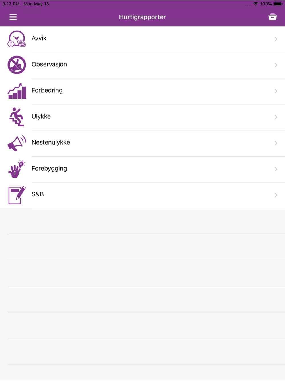 Appen er koblet til www.hseqreports.com for oppfølging og behandling av alle saker. Du vil trenge brukernavn og passord for å kunne bruke appen til rapportering.