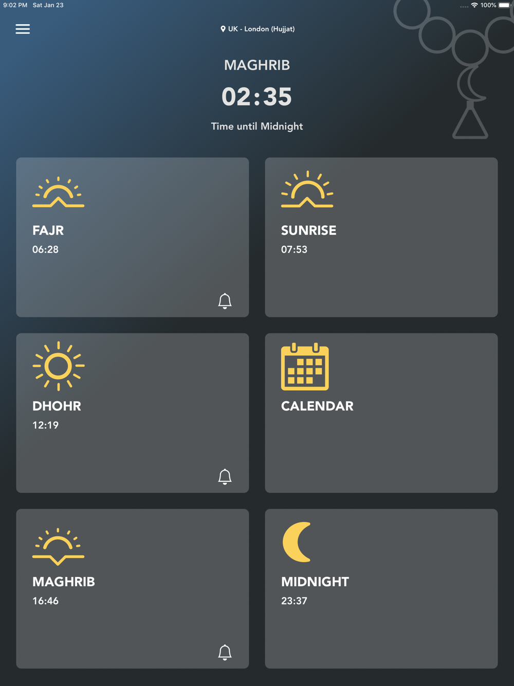 - Automatically receive Adhaan notifications from a choice of 3 reciters