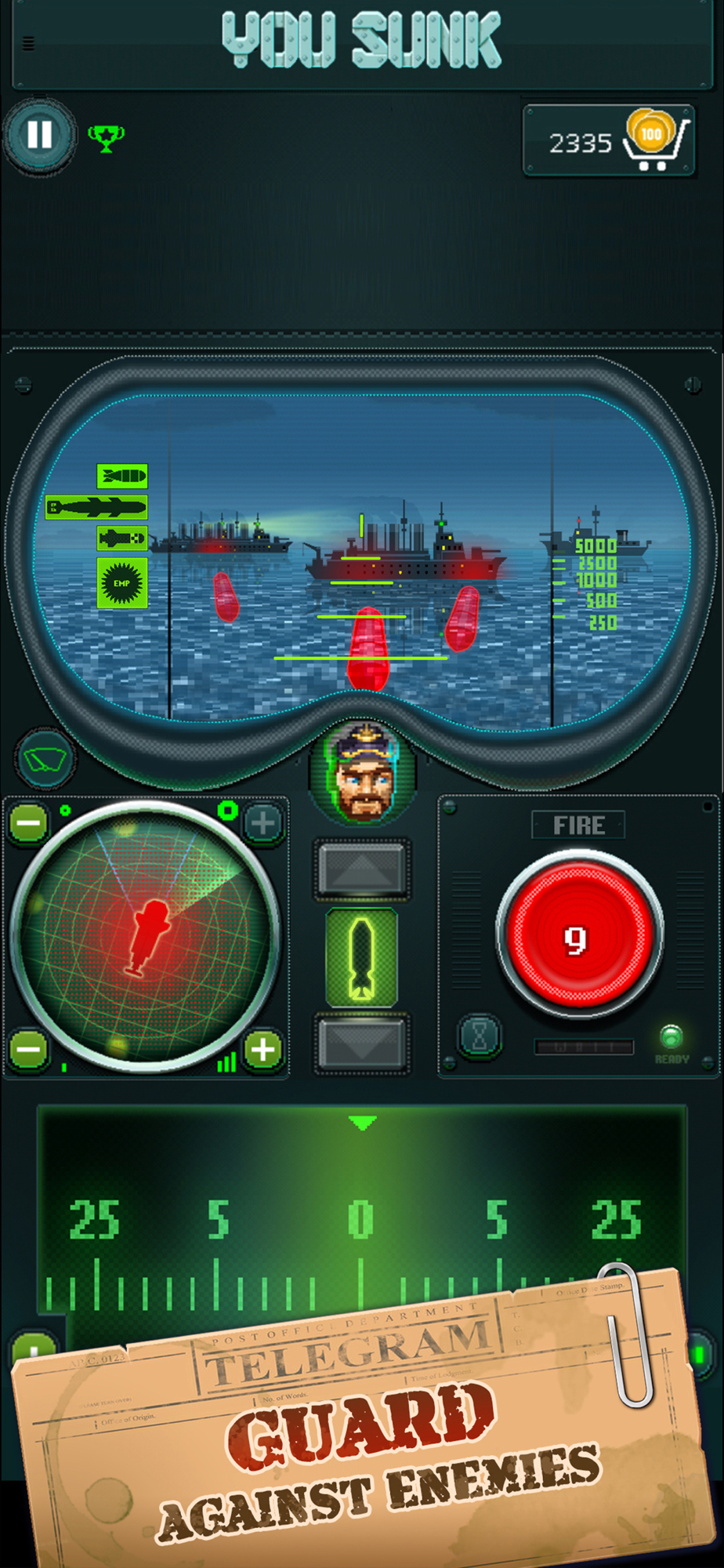 - Upgrade armor shield of your submarine and upgrade speed of your torpedoes