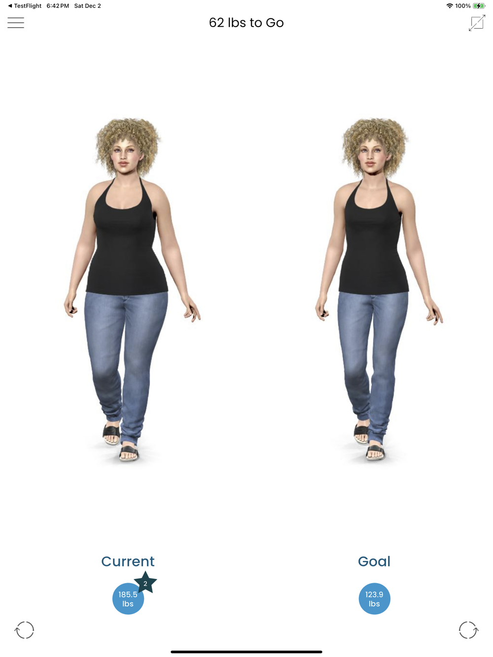 Track your daily weight change. See your future healthy self from the front, side, and back.