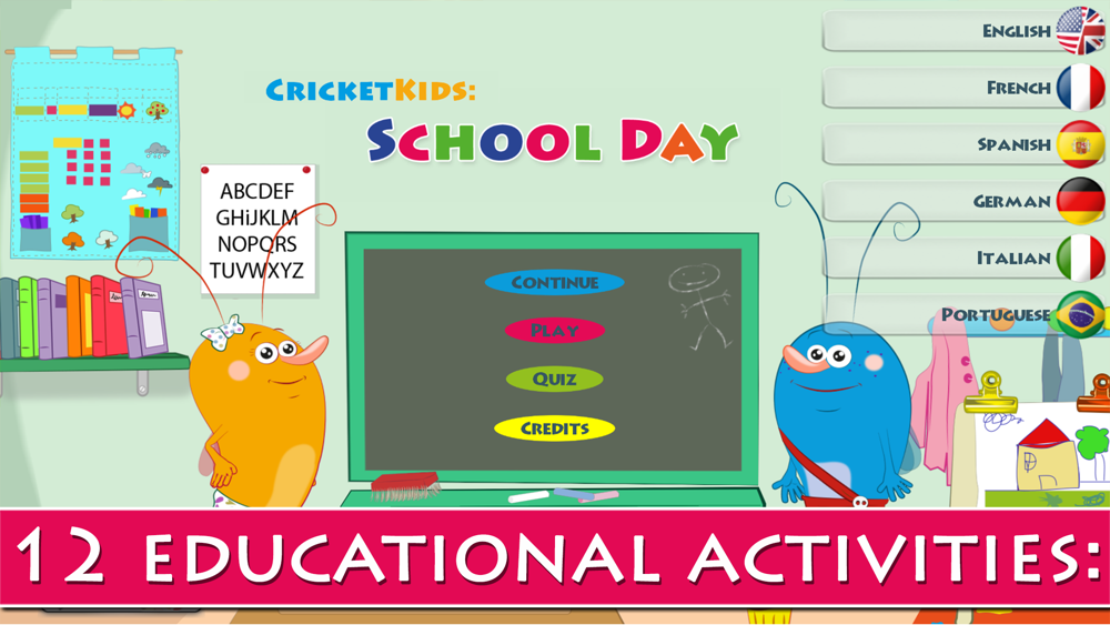 In “Cricket Kids: School Day,” your child will love entering or rediscovering the world of school through 12 varied games.