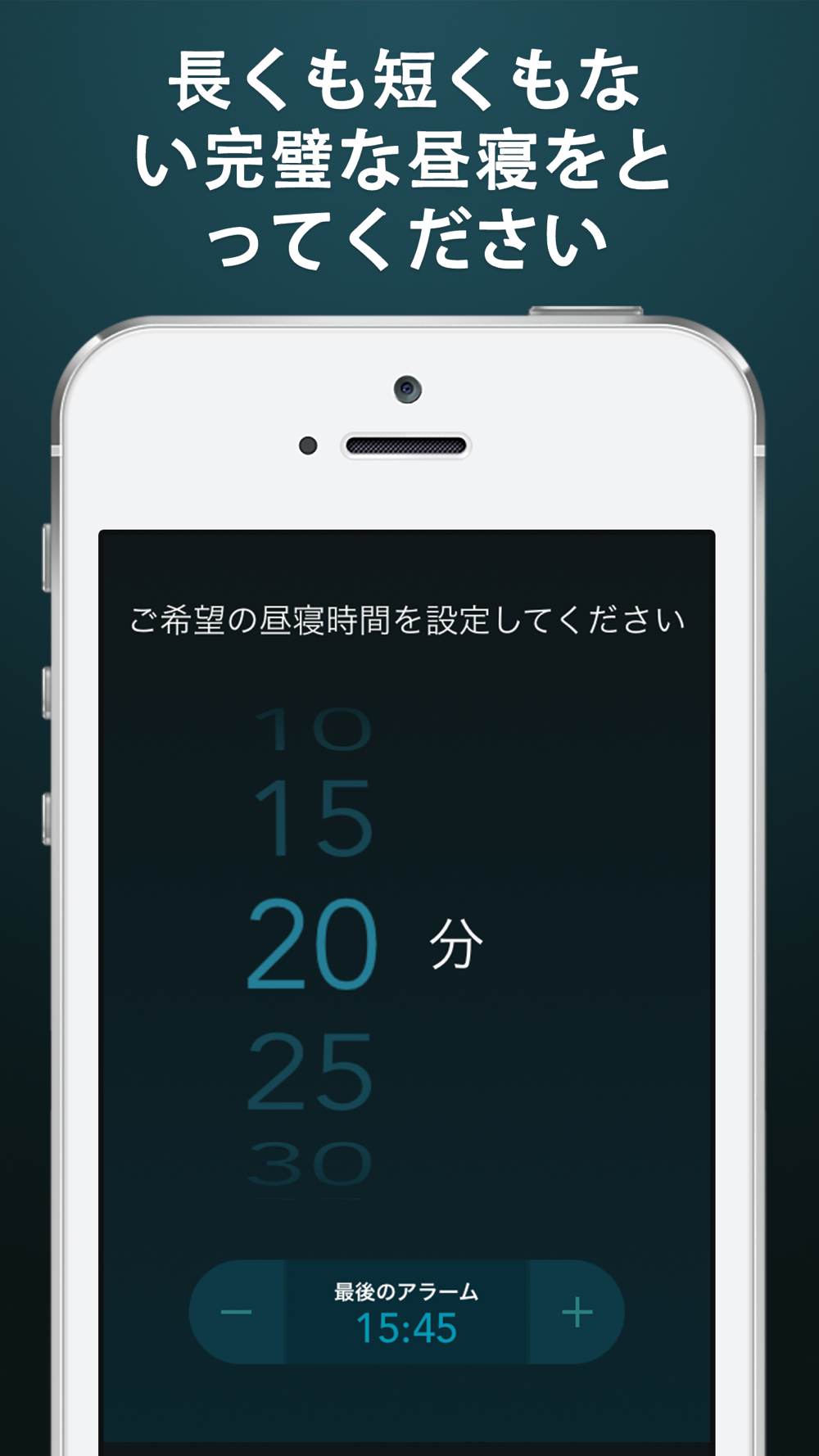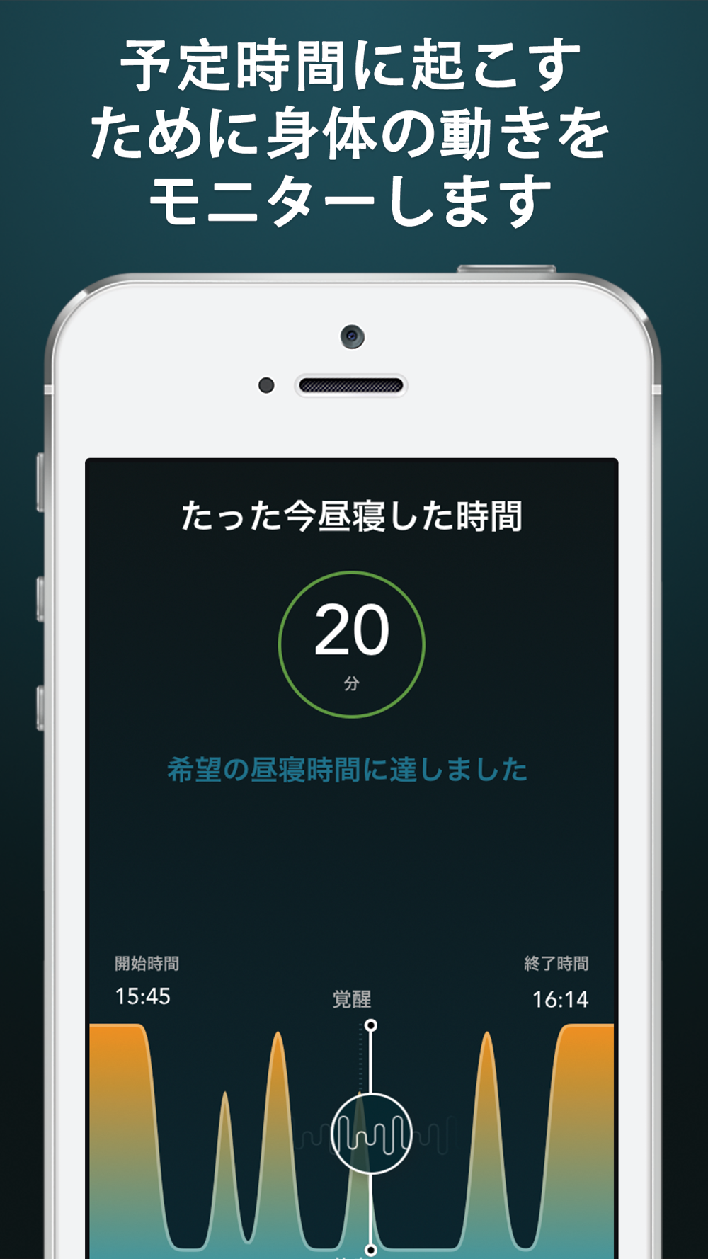 10~30分の短時間の昼寝は思考や生産 性に驚くほど効果があります。しかし昼寝が長すぎるとかえって疲れたり、ぼんやりしたりすることがあります。パワー昼寝トラッカーは昼寝をモニターし、選択された休憩時間後にあなたを起こすため、新鮮な気分で目を覚まし、元気を回復することができます。