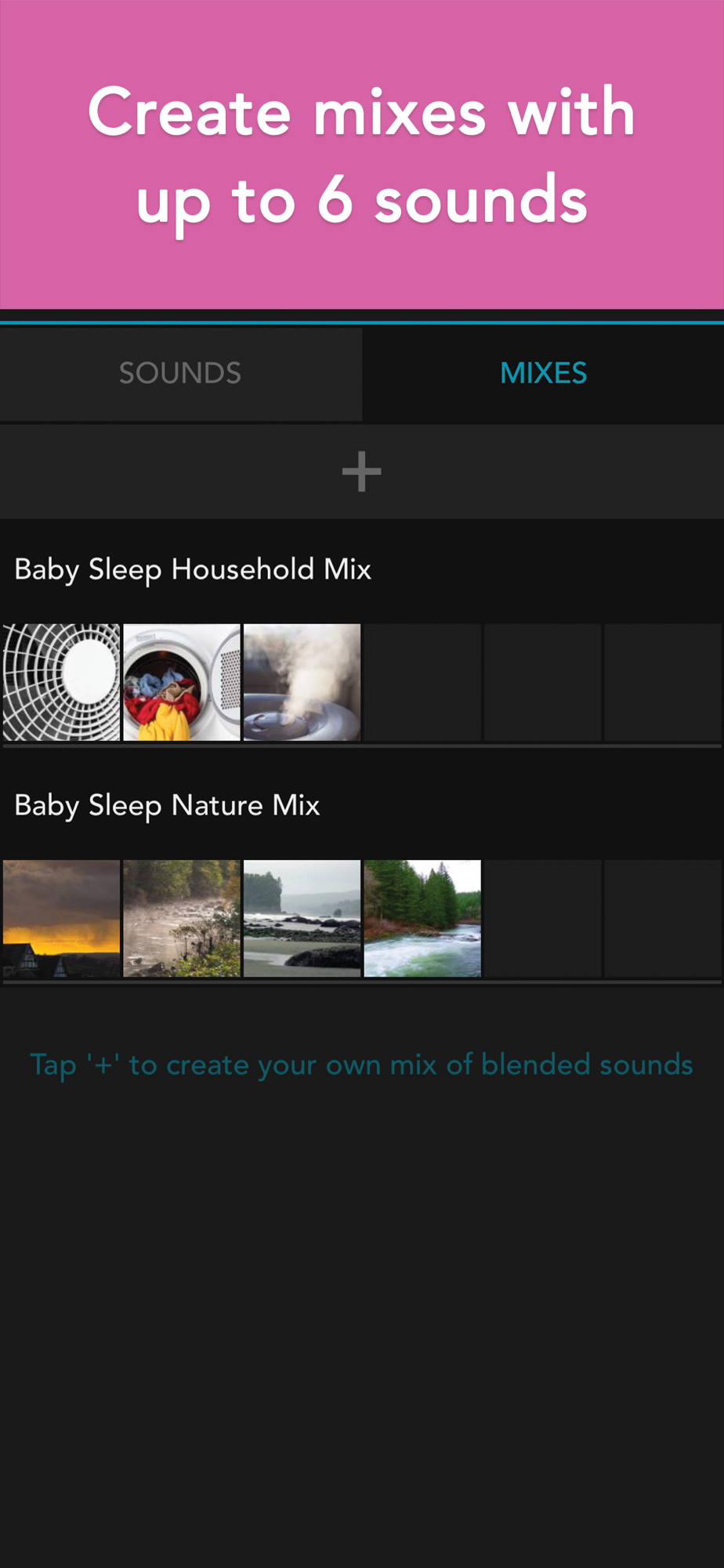 Create calming sound mixes with up to 6 different sounds. Your baby will sleep deeply every night, and you’ll feel better rested.