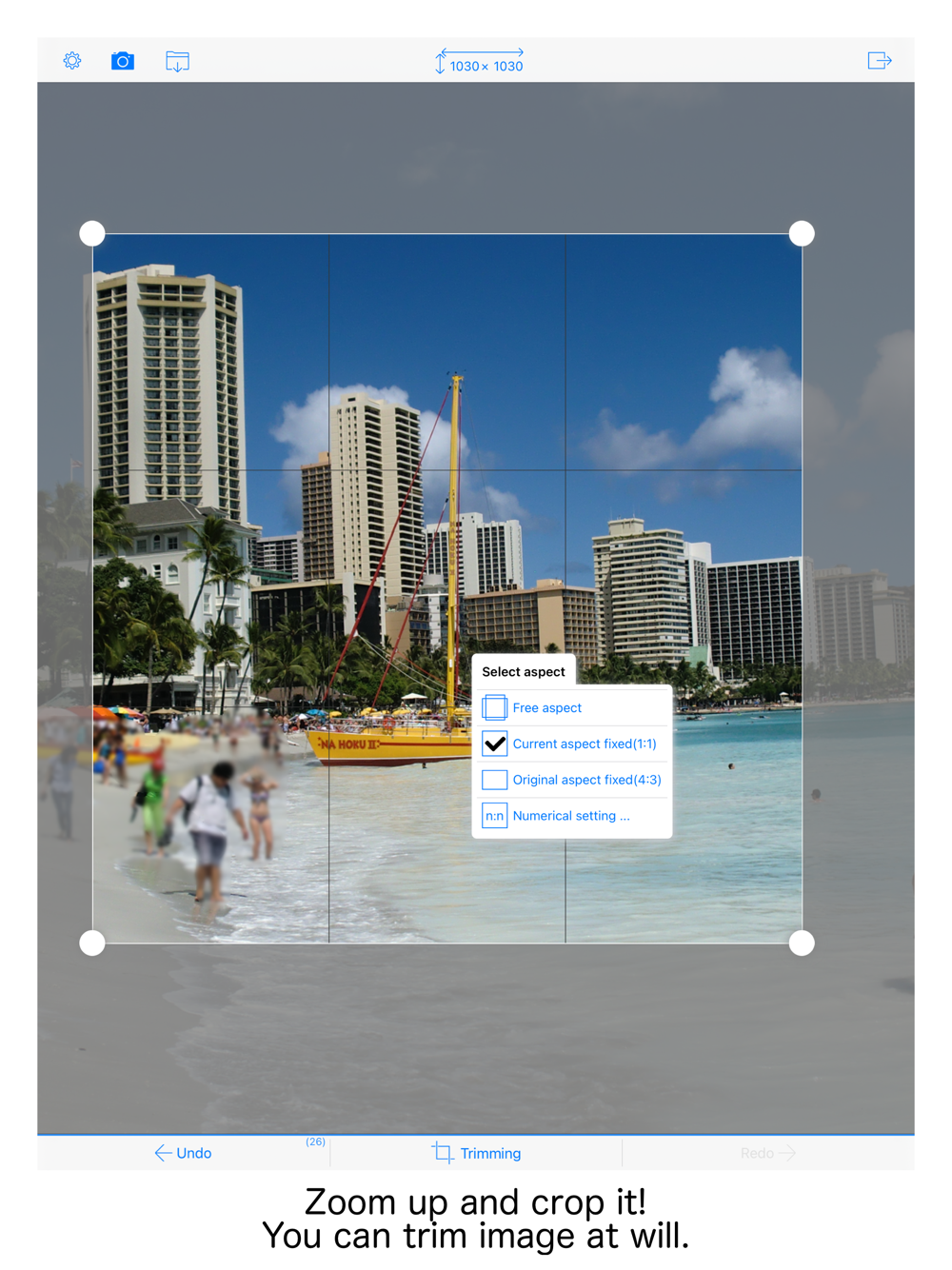 - You can simply trim frame by adjusting corner marker. Aspect ratio adjusting also OK.