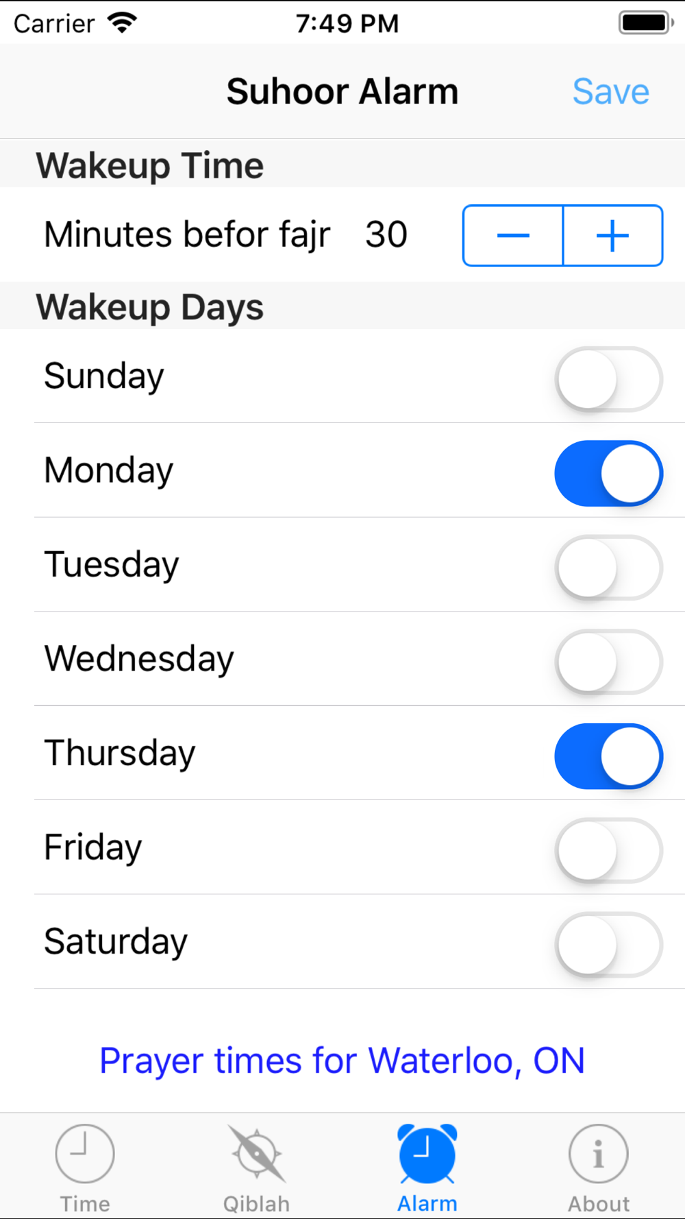 Wither fasting specific days of the week or fasting the whole month of Ramadan, Suhoor Alarm is a smart tool that keeps watching the changes in Fajr time and will wake you up at any desired minutes before Fajr.