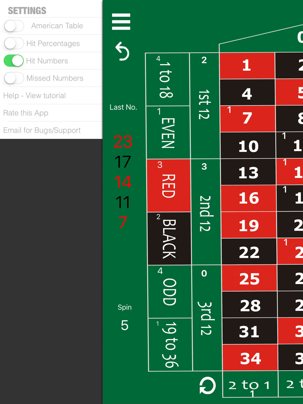See the percentages or count of Red/Black, Odd/Even, Hi/Low.