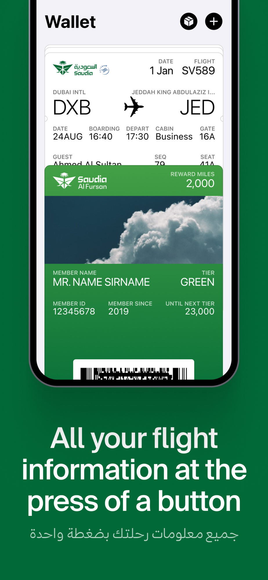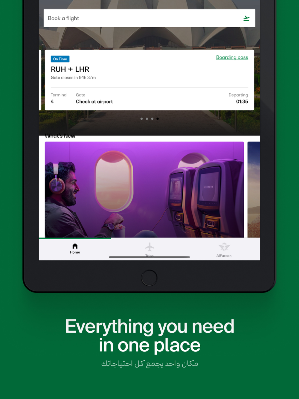 The Saudia mobile app offers travelers a sleek and superior experience to Book, Manage Trips, Check-In and more. ALFURSAN members have access to a dashboard with key account information at their fingertips – making the app the ultimate traveler companion.