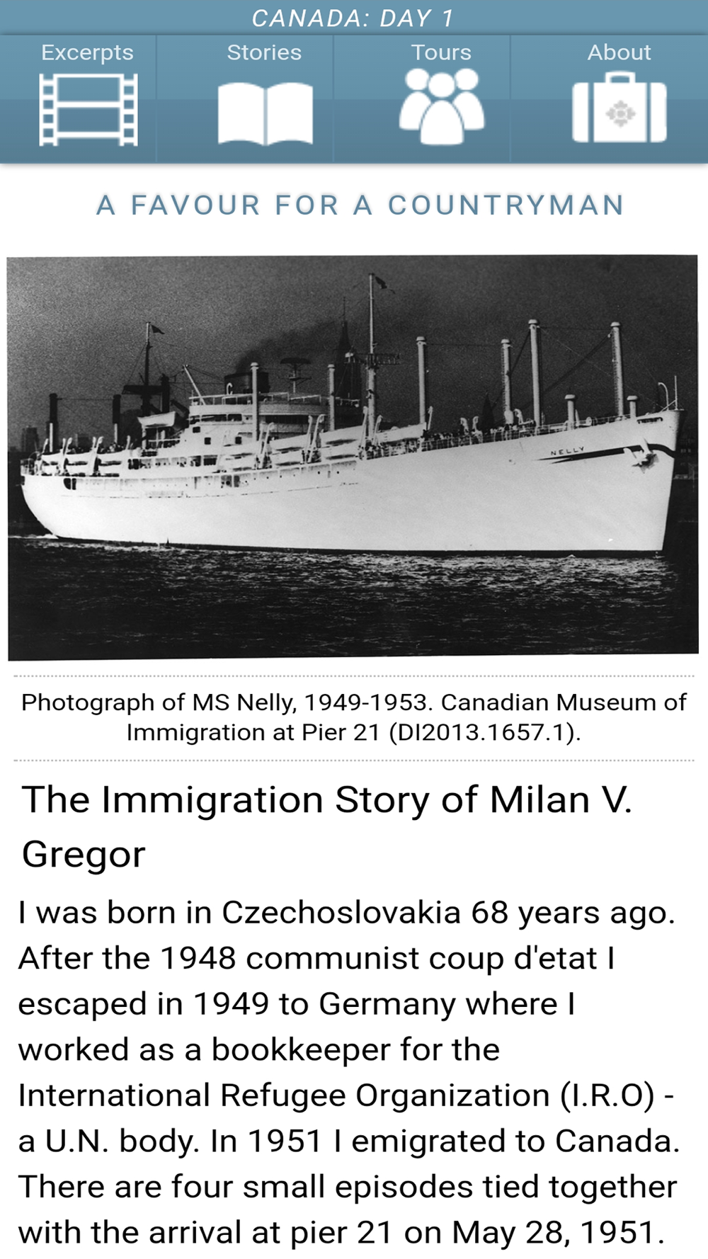 Carry a piece of the Canada: Day 1 exhibition with you— in your smartphone! Watch video clips of newcomers sharing their first impressions of what was new and different about Canada. Hear personal stories about leaving home behind, being confronted with discrimination and truly feeling Canadian. Read tales of surprise, triumph and challenge in the stories from our collection. Join the conversation via Twitter and share your own first impressions about Canada and the immigration experience. Connect with us @Pier21 #CanadaDay1.