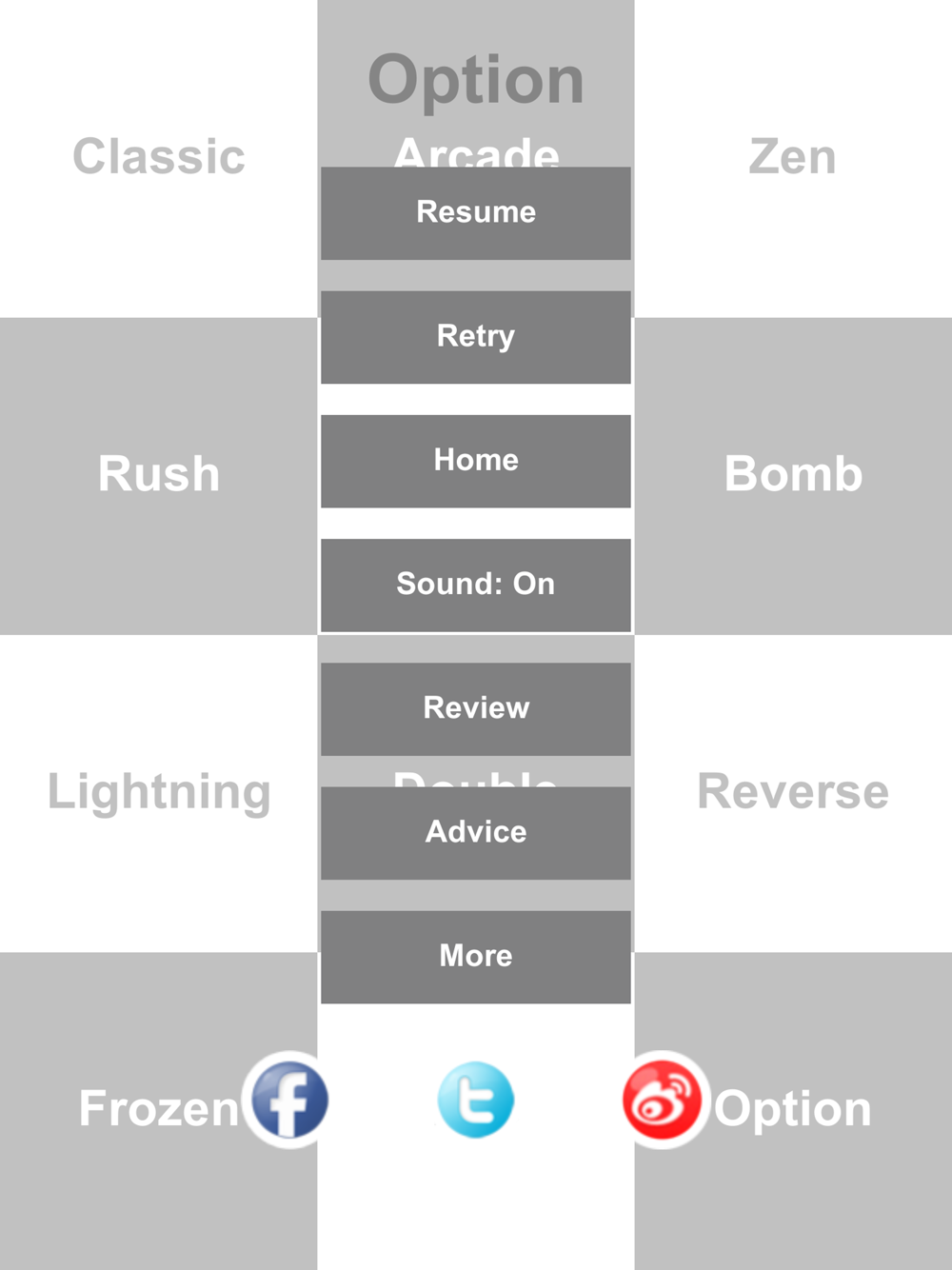Bomb Mode, Lightning Mode, Double Mode, Reverse Mode, Frozen Mode, Fire Mode.