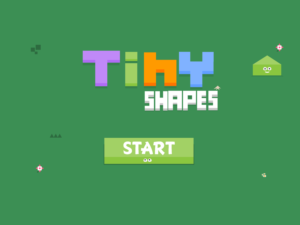 The goal in Tiny Shapes is to learn shapes and colors by matching the correct shapes judging from colour, shape and size. Four types of blocks square, triangle, circle and pentagon.