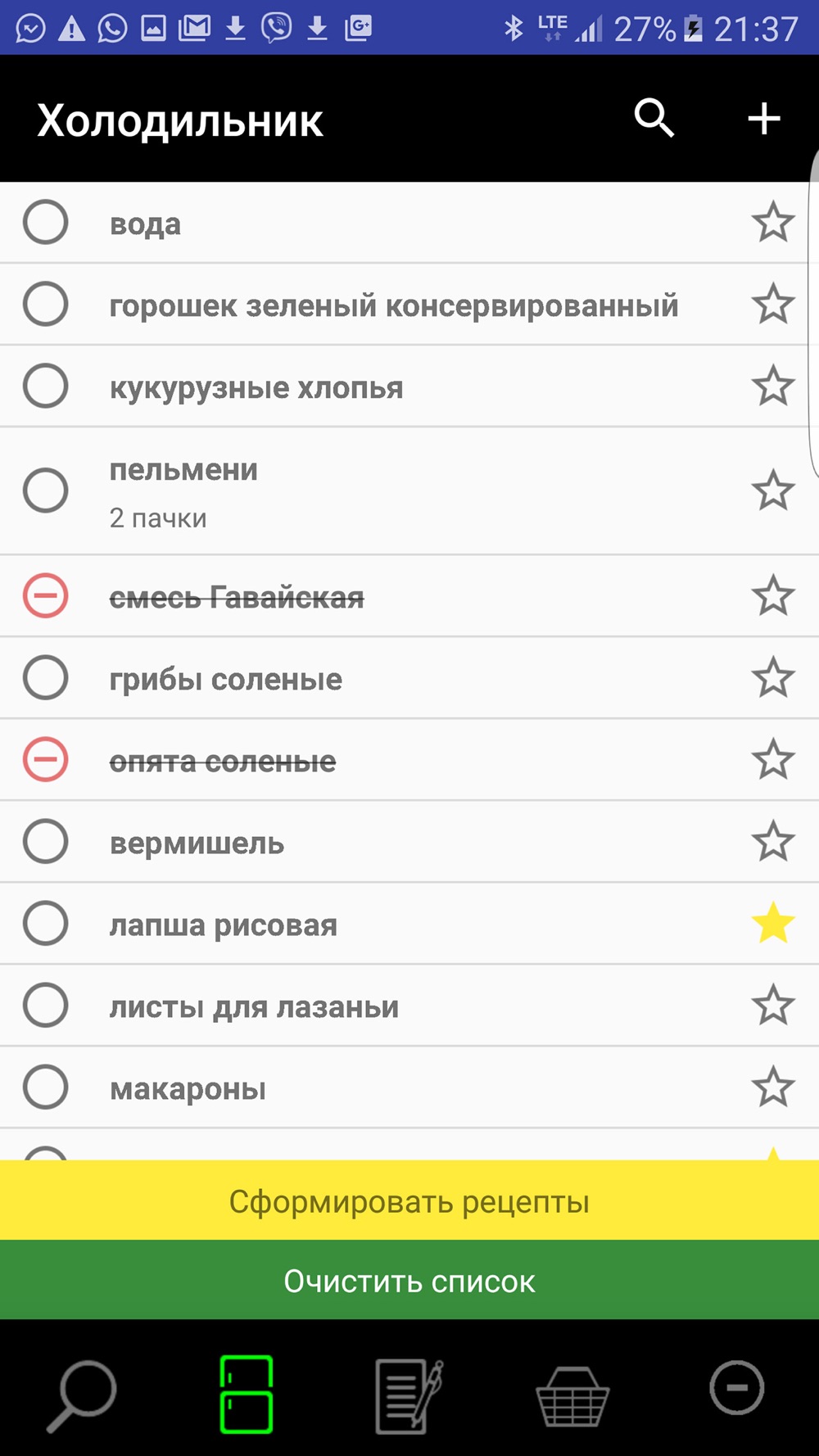 4) Благодаря свойствам списков "Холодильника" и "Корзины", Вы можете использовать приложение для организации удобного учета и закупки продуктов.