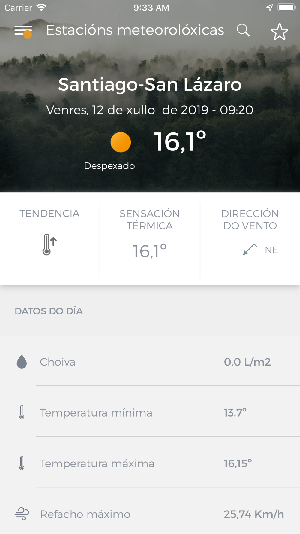 Con esta aplicación y desde la sección de Observación, se podrá acceder a las imágenes en tiempo real del radar de MeteoGalicia, del satélite Meteosat, a datos en tiempo real de las estaciones meteorológicas, de calidad del aire y de las boyas oceanográficas de la Xunta de Galicia.