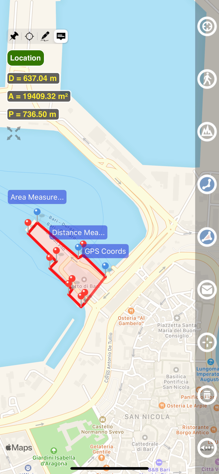Planimeter is a tool to measure distance, area and perimeter on a map. You can measure manually or by GPS tracking. You can also check the bearing and geo-coordinates of your location and share it. Points can be labeled, saved and shared in KML format.