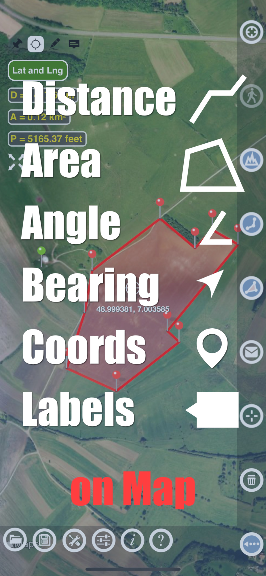 This measurement app is useful for outdoor activities and can be used as land surveyor by amateurs and professionals in various industries like sport, farming, landscaping, paving and construction, road building and repairing, real estate business, hiking and travel, fencing, lot building and planning, solar panel installation (roof area estimation), object mapping, lawn design, and many other where land area and distance / length calculations, land survey or maps are involved.