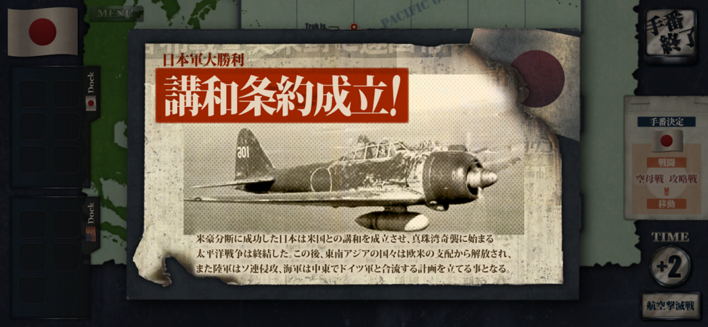 航空戦力の運用という新たな局面を迎えた大国同士の戦争では、航空母艦と基地の存在が大きくクローズアップされる。本ゲームでは空母を攻撃用戦力としてユニット化。拠点となる基地にて機動部隊を編制し、敵を攻略していく。