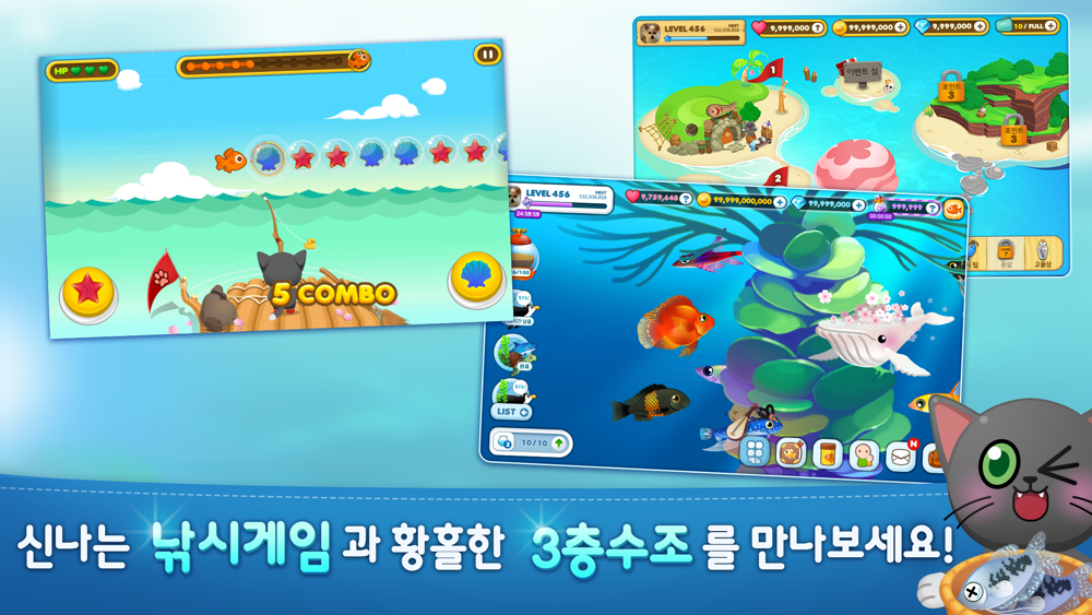 200여 종이 넘는 물고기들과 200여 종의 꾸미기 아이템, 배경까지!