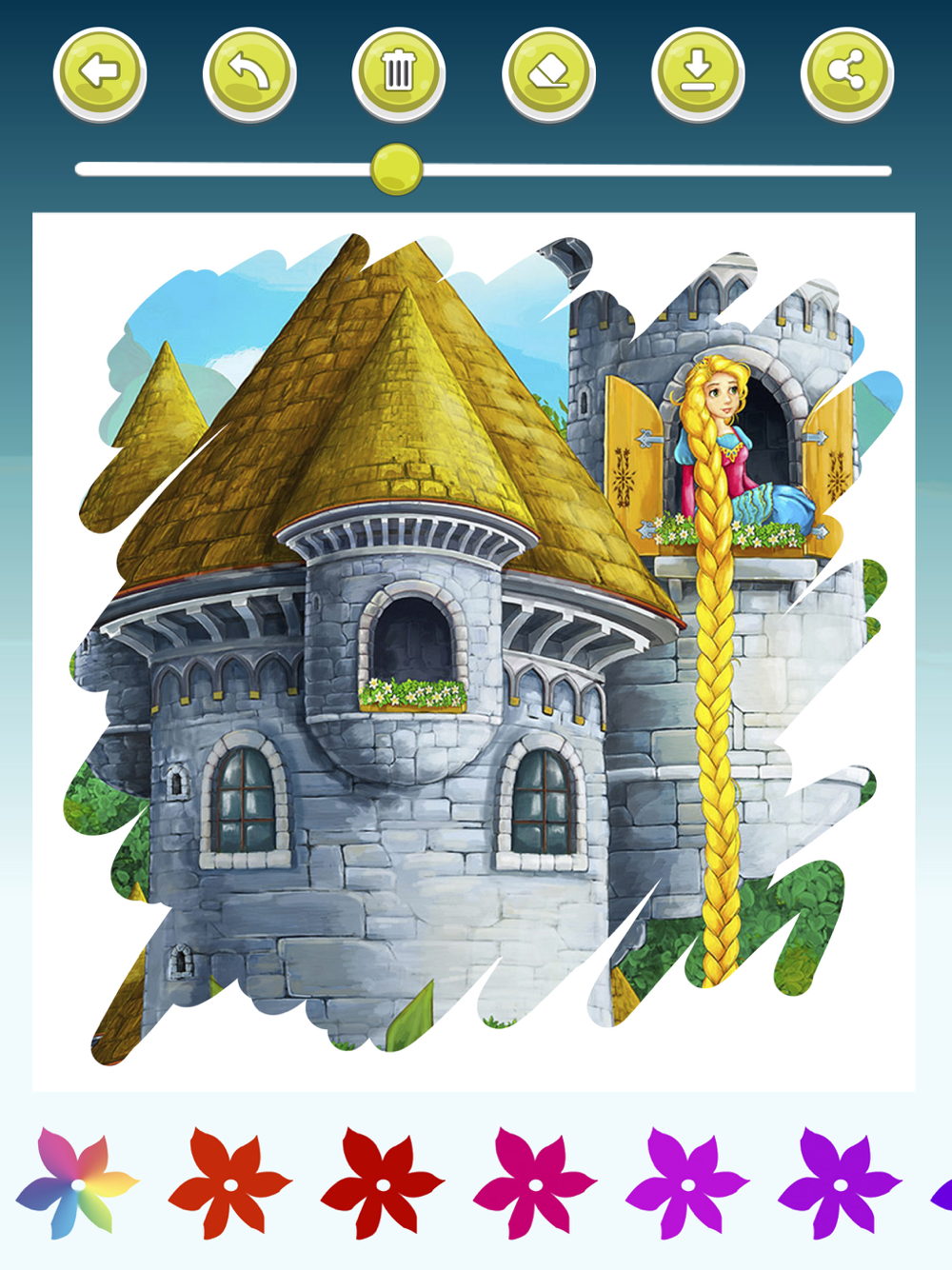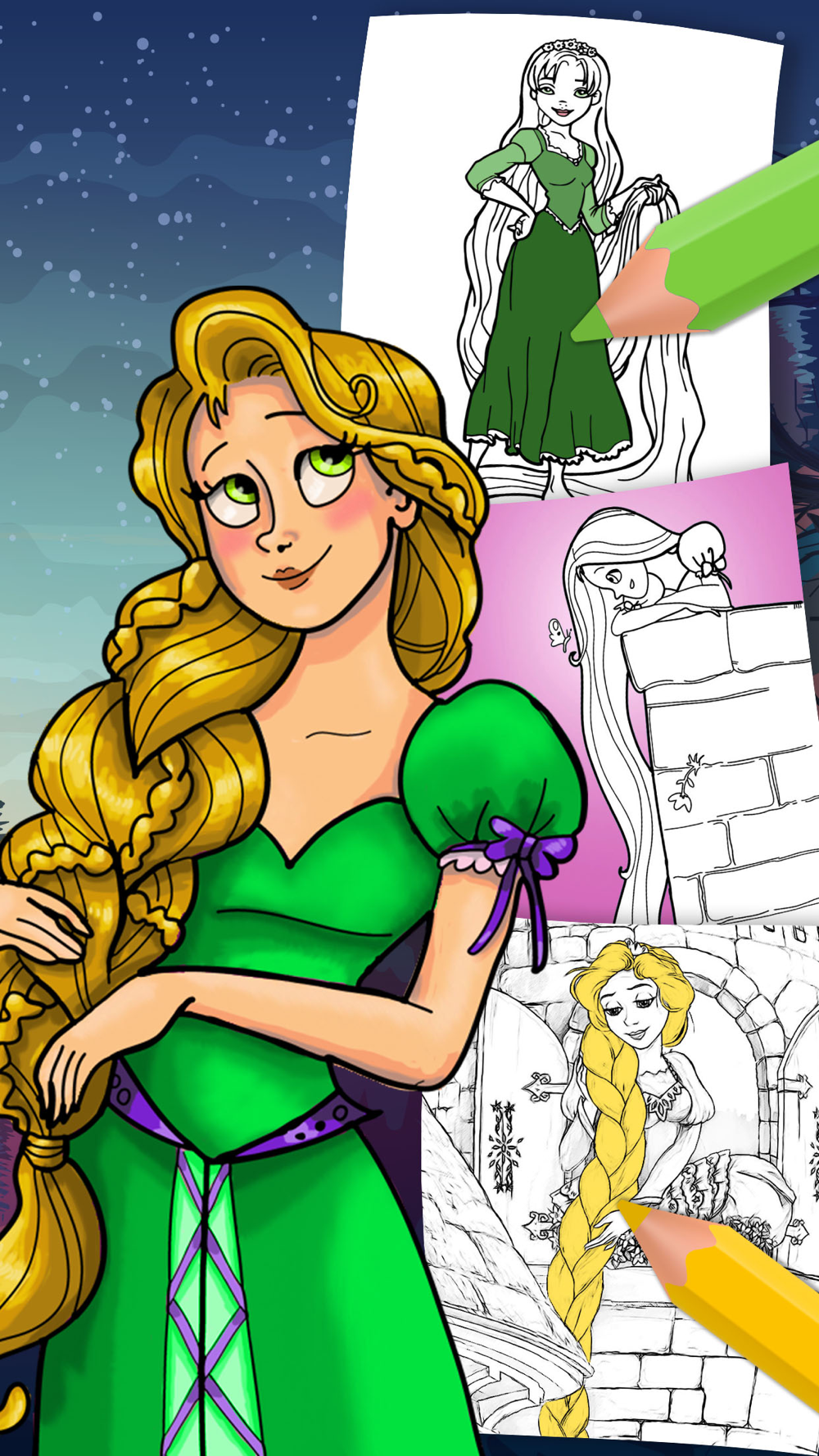 Do you like coloring princess drawings and different scenes from fairytales? Then, this app is perfect for you. We have collected the lovely drawings of beautiful princess Rapunzel with gorgeous dresses, princess makeup and more. Play with different color combinations and increase your creativity. Download now and start to color, paint and doodle!