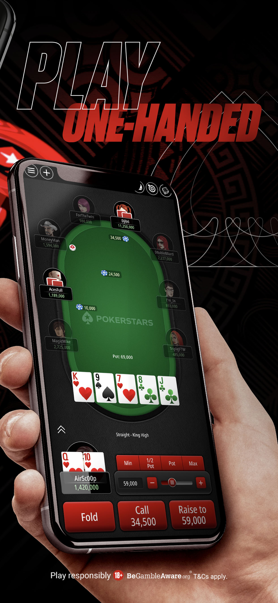 Part of the fun is knowing your limits. We offer a range of tools and advice to help players stay in control of their play, simply visit pokerstars.com/about/responsible-gaming/ for information.