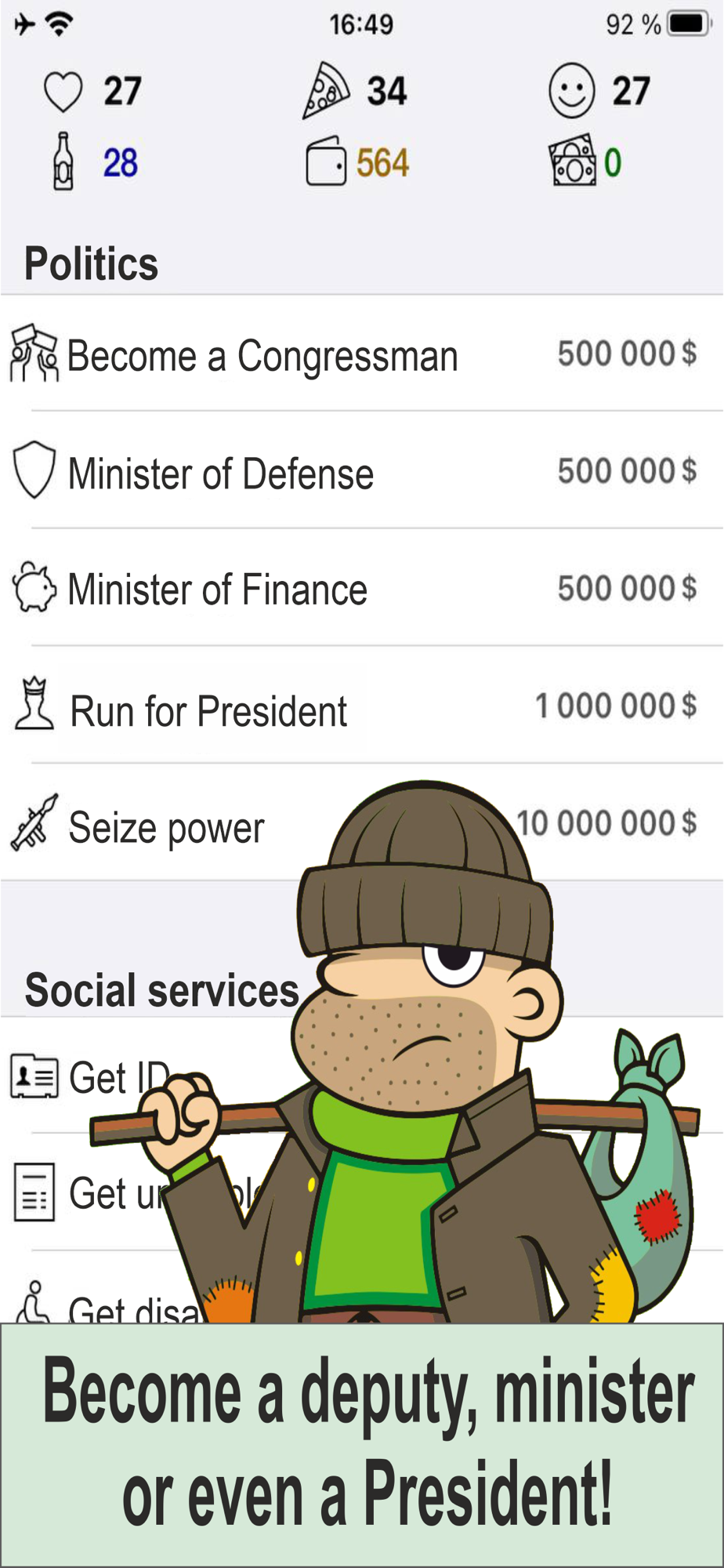 If your health, satiety, mood or money drops to zero, you will have 7 days (moves) to increase them, otherwise you will lose.