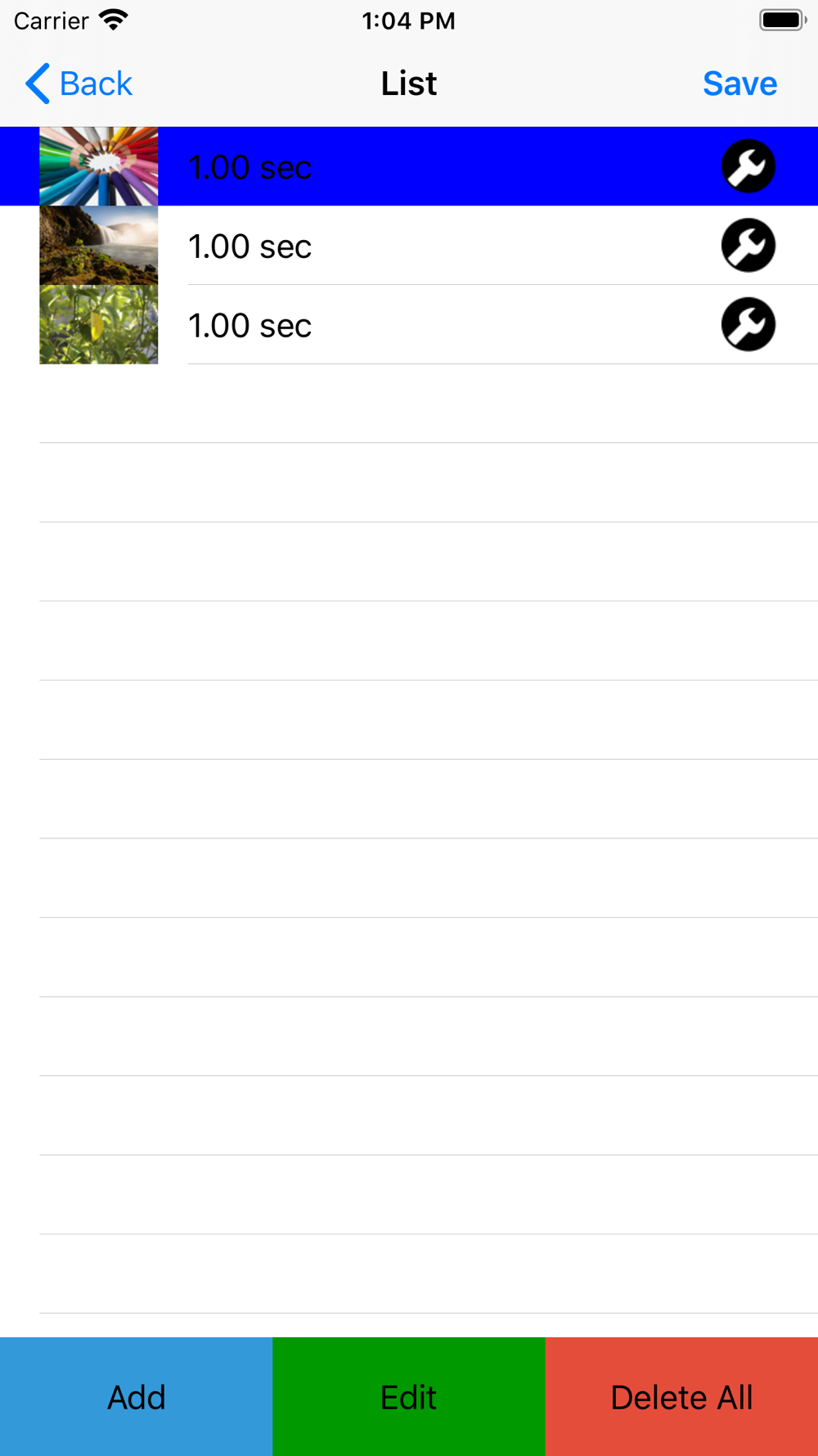 If you press the i button at the right end of the line, you can change the image and change the playback time.