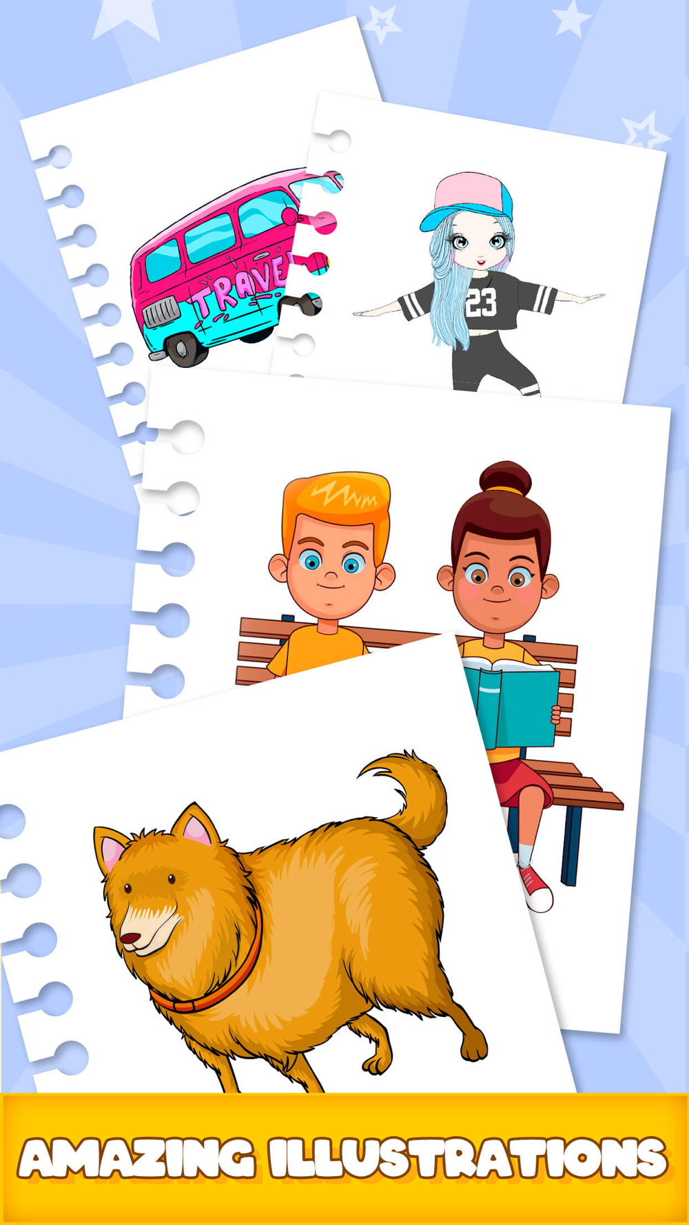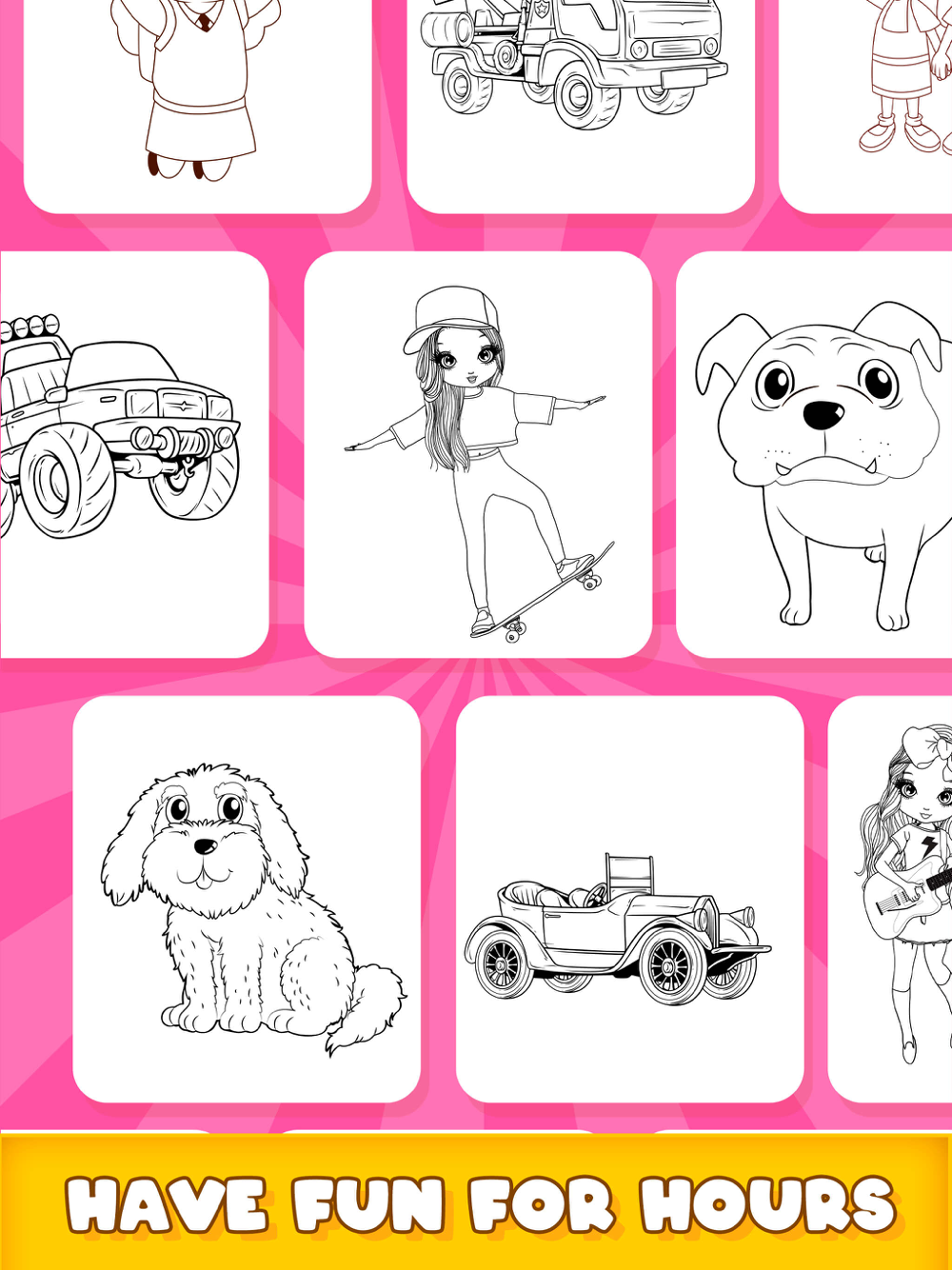 "Enjoy different coloring pages images. Discover drawings of vehicles, animals and different objects. Choose your favorite drawing, play with different color combinations and increase your creativity. A colorful and easy way to;