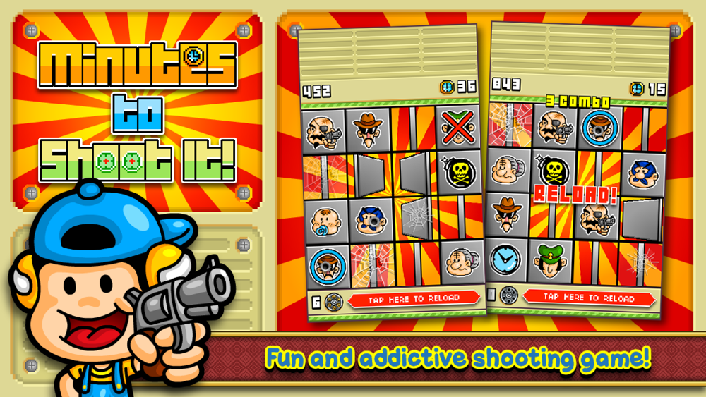 This is a fast-paced casual shooting game which is easy to play but hard to master. Shoot as fast as you can and avoid shooting civilians and bomb. Challenge your friends and become the Top Gunners on the leaderboard.