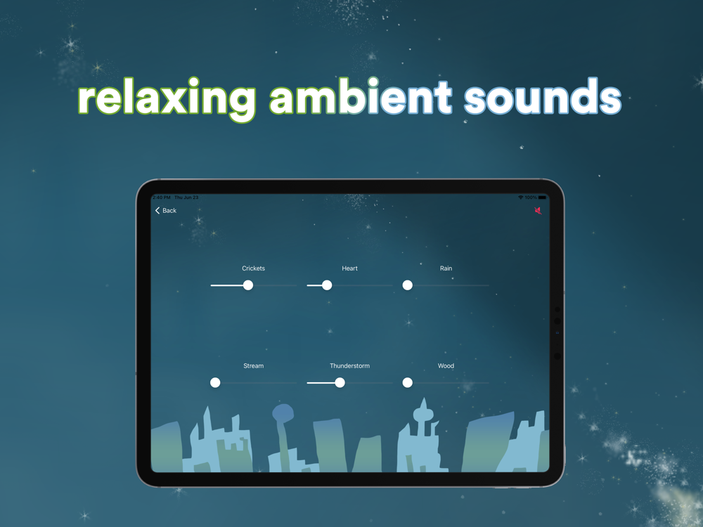 - A Relaxing Sounds Pack: you will be able to play seven unique relaxing sounds while playing the music. These include "Forest Noise","Crickets Field","Sea Waves","Heartbeat","Flowing River","Pouring Rain" and "Rainstorm".