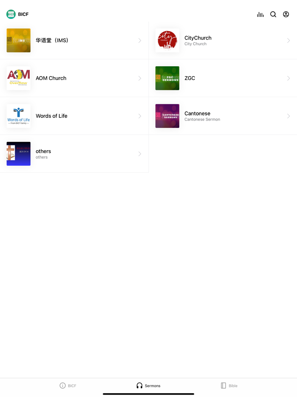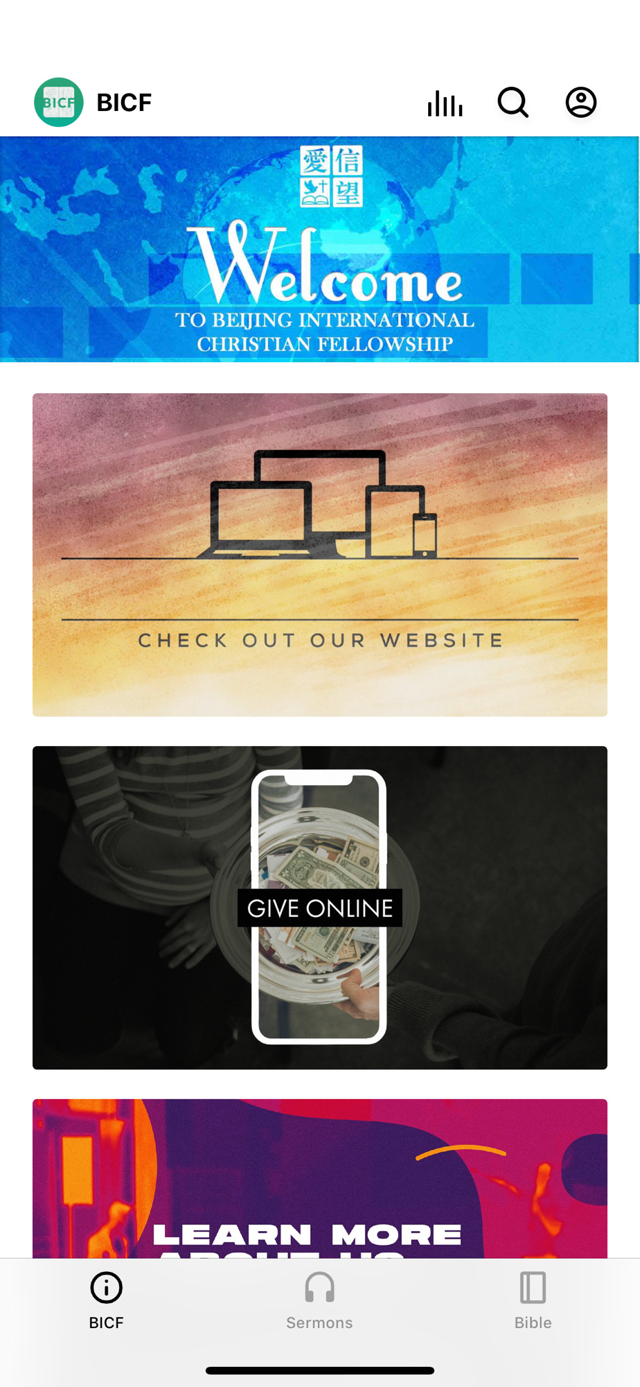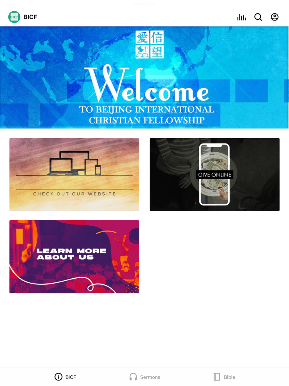The BICF (Beijing International Christian Fellowship) App was created with the Subsplash App Platform.