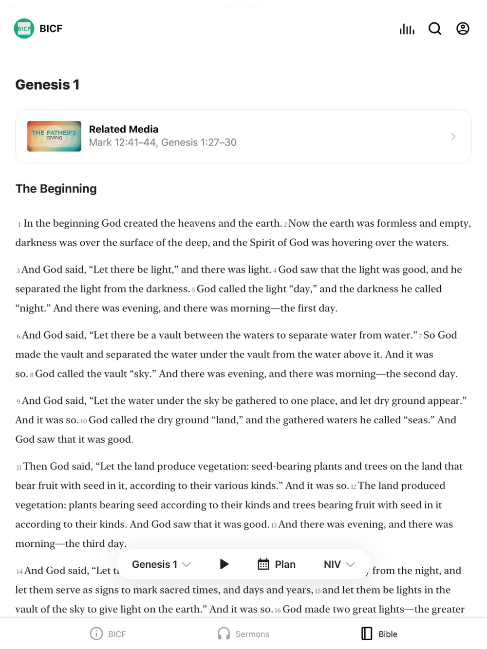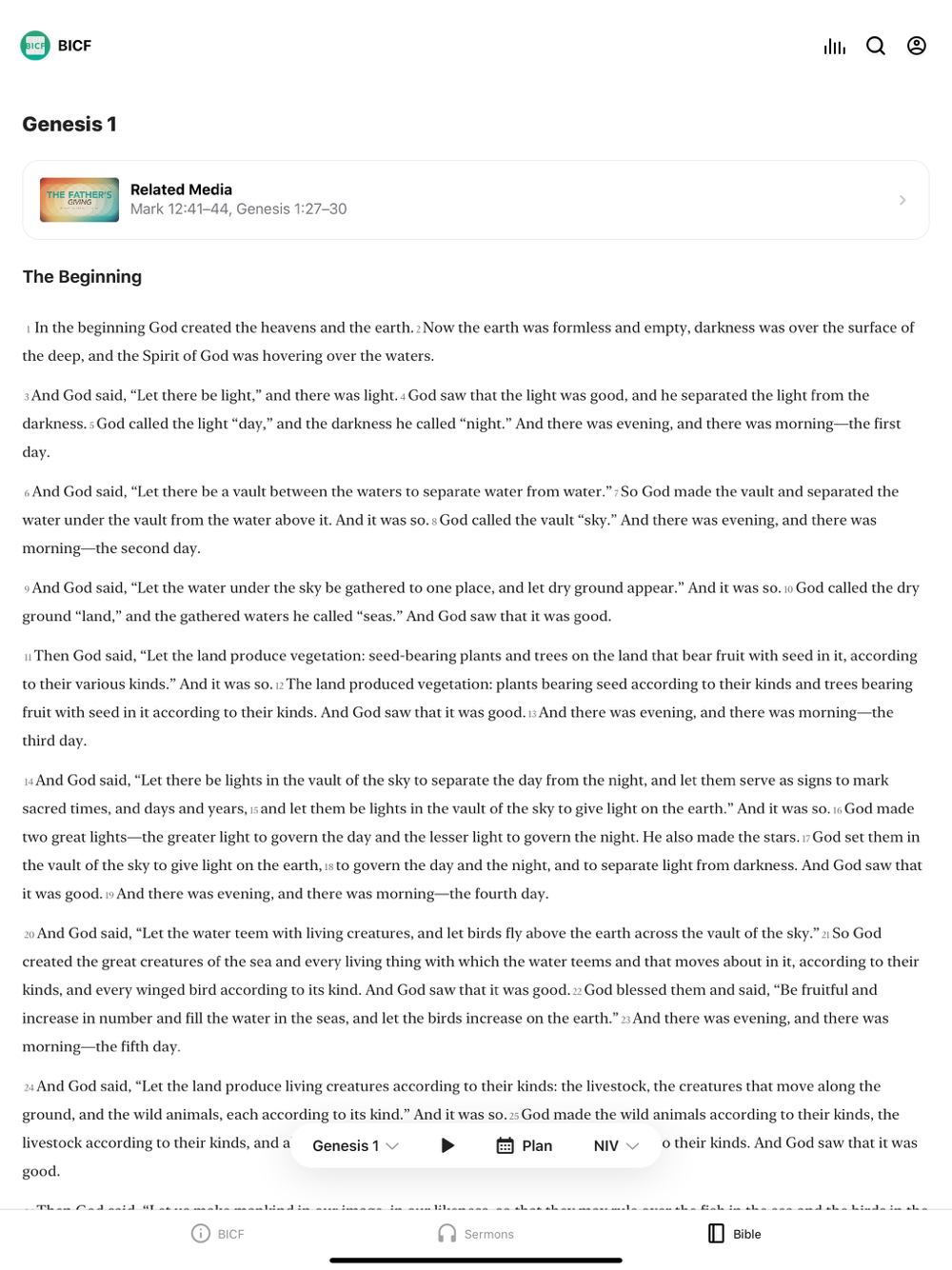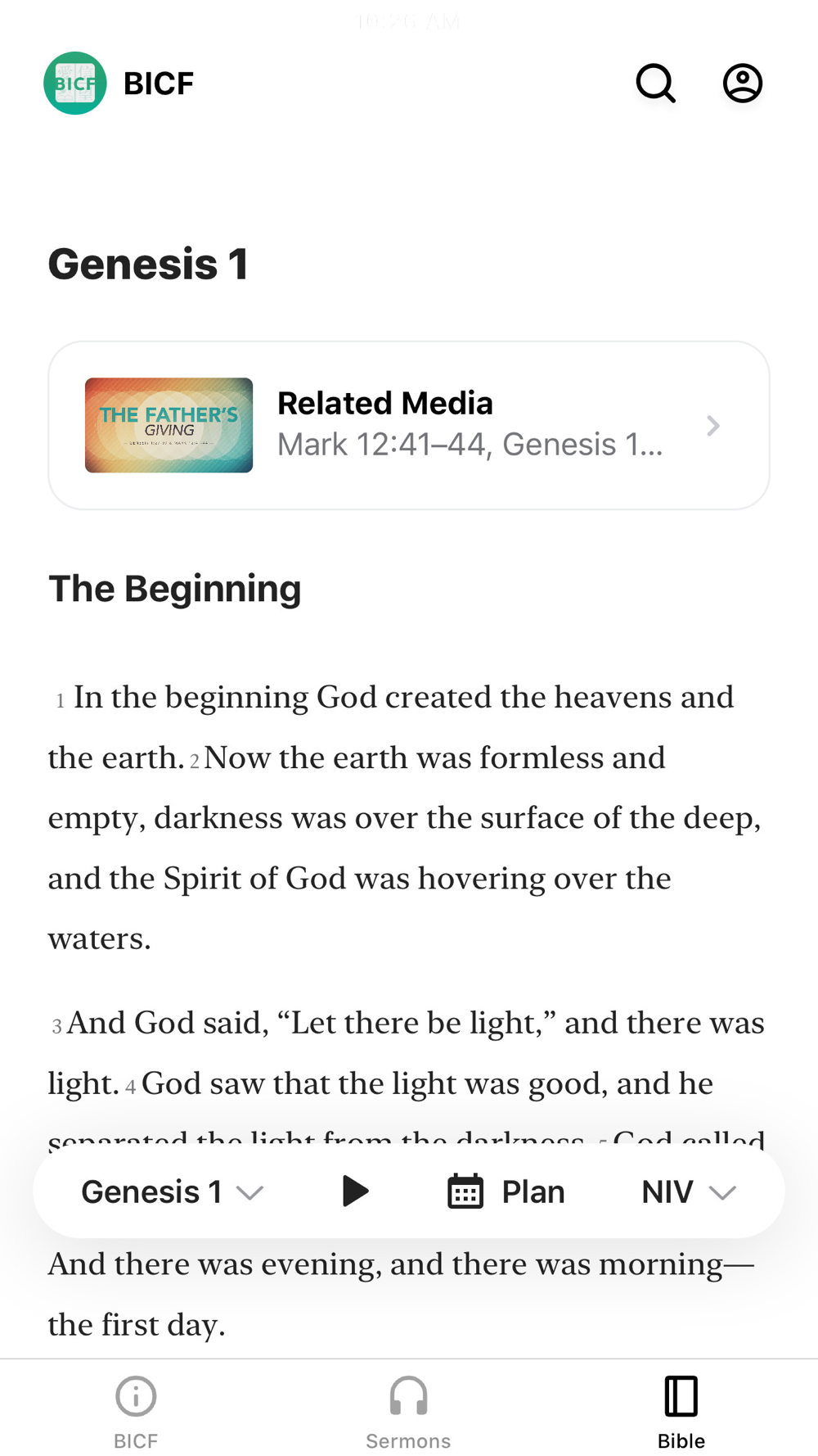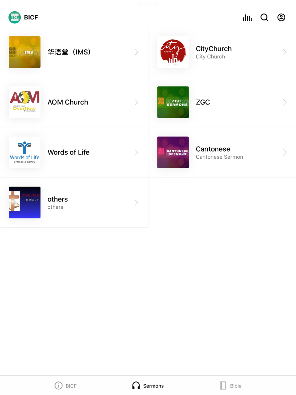 The BICF (Beijing International Christian Fellowship) App was created with the Subsplash App Platform.