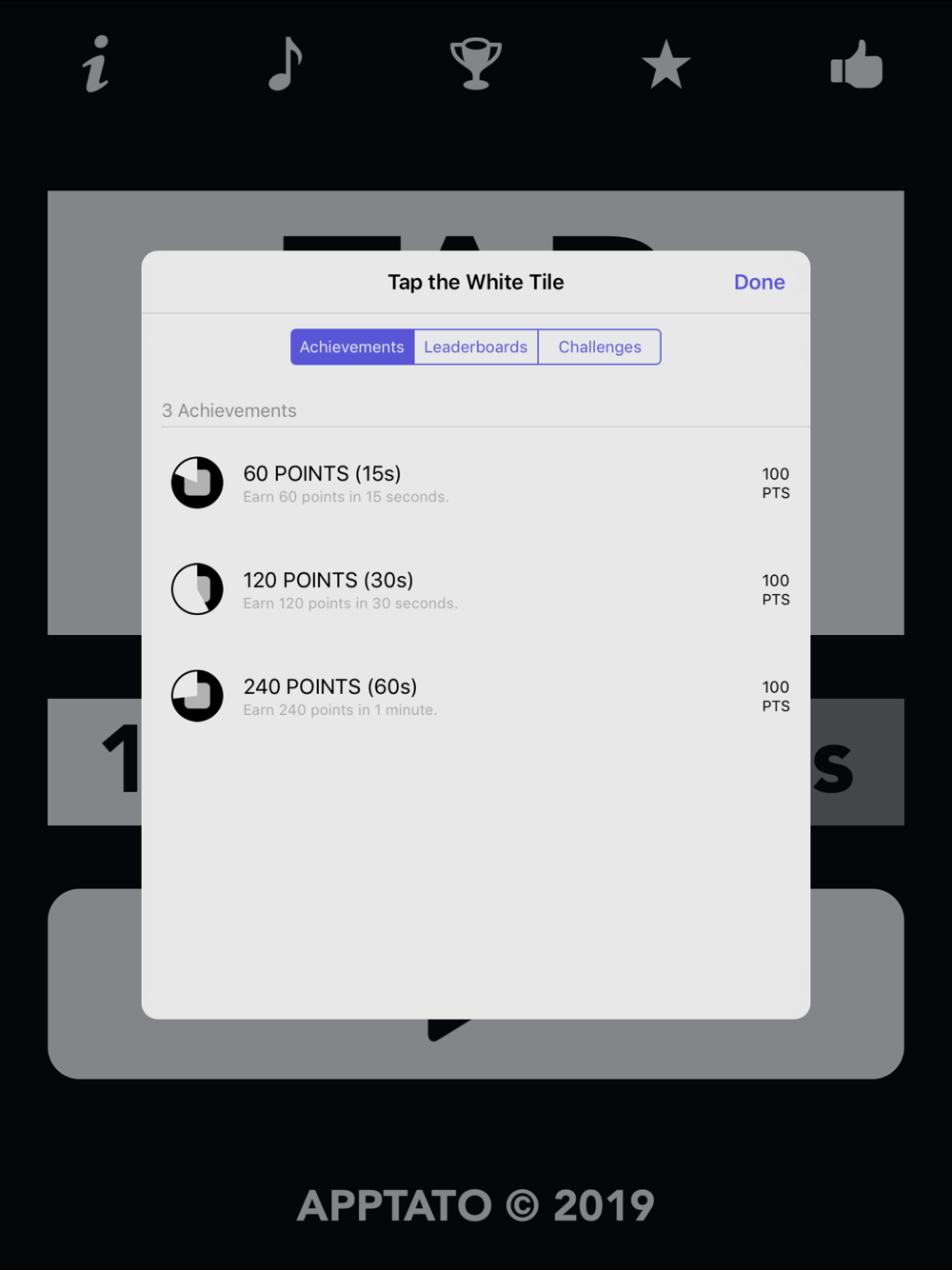 • Earn achievements for each mode: 60, 120, 240 points respectively.