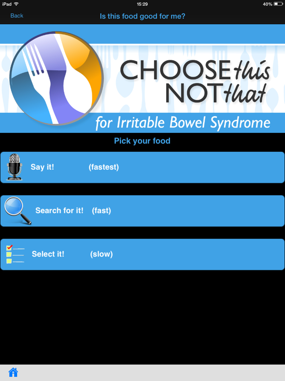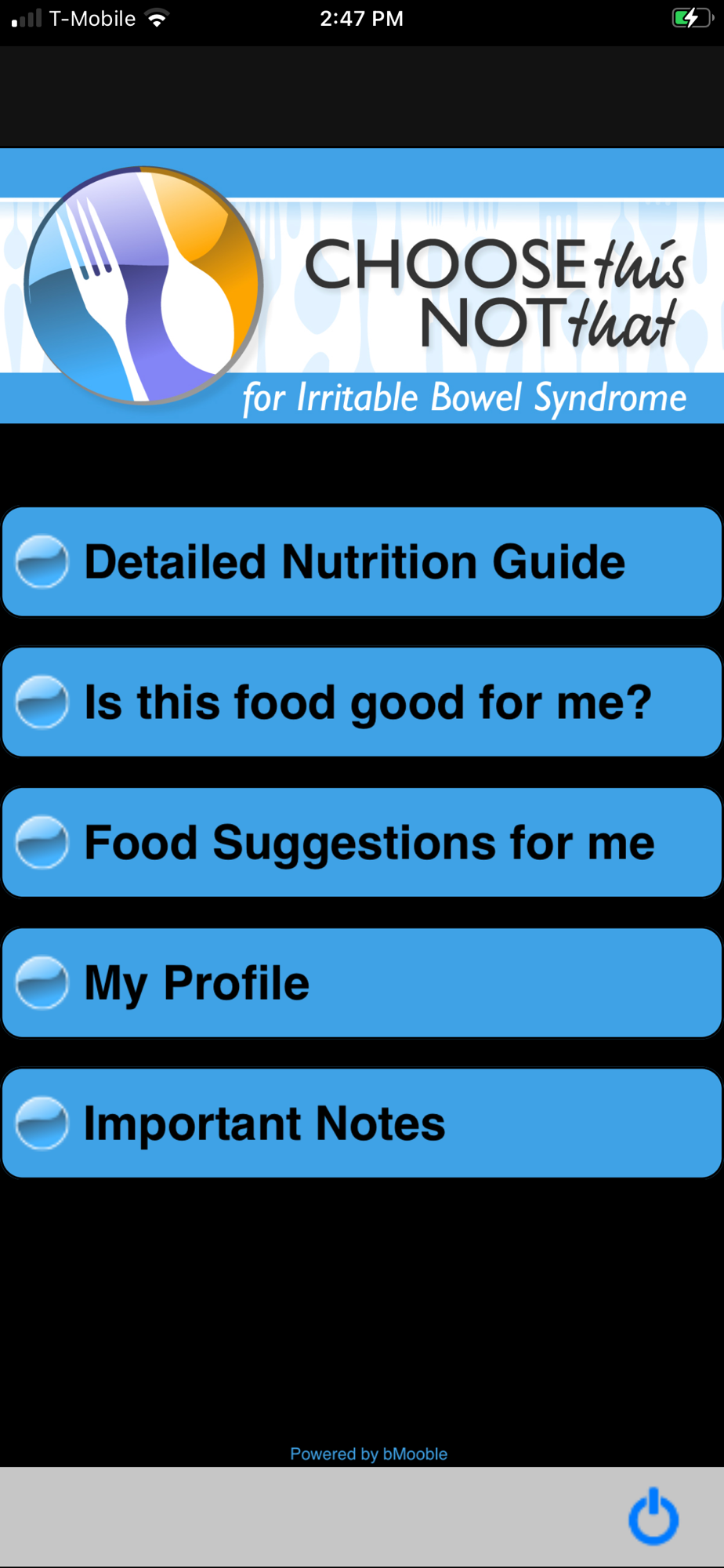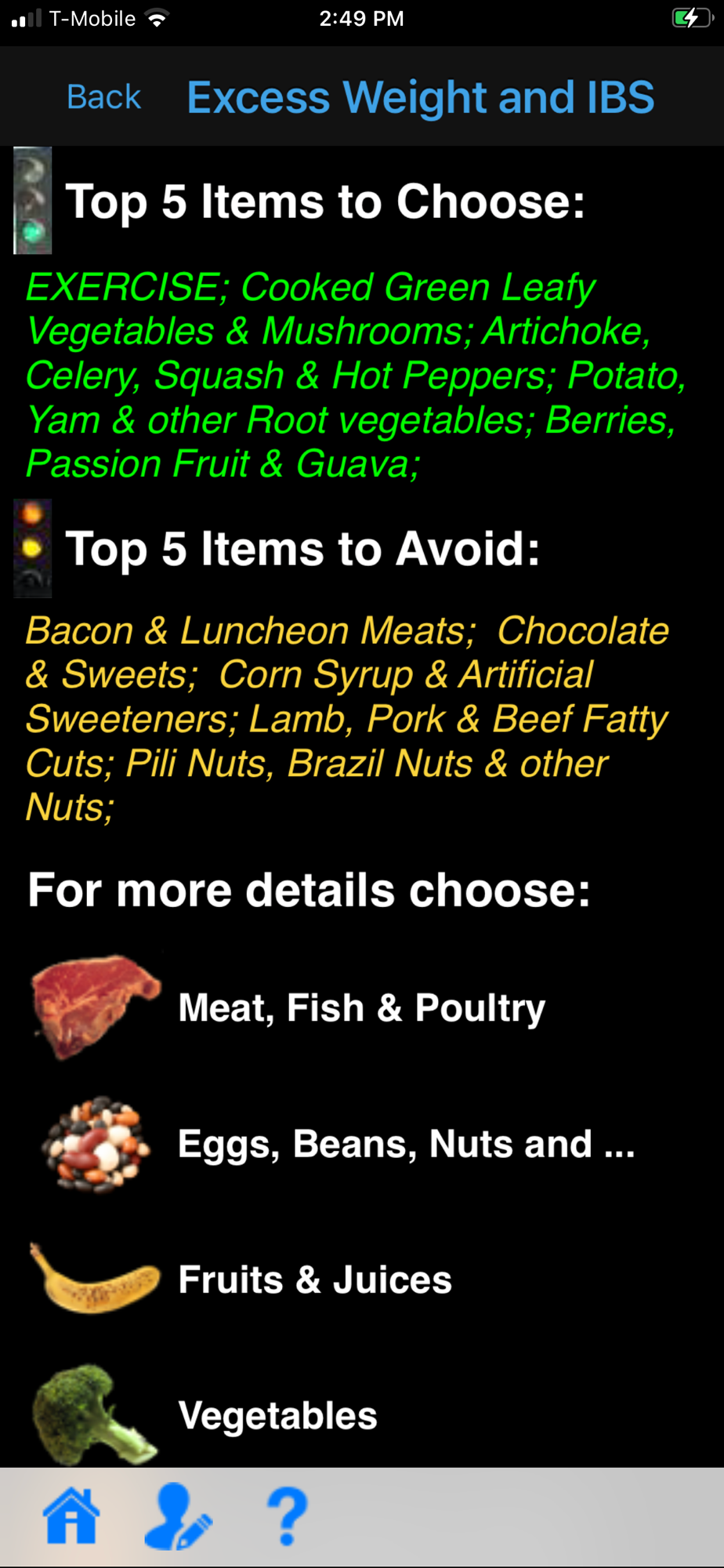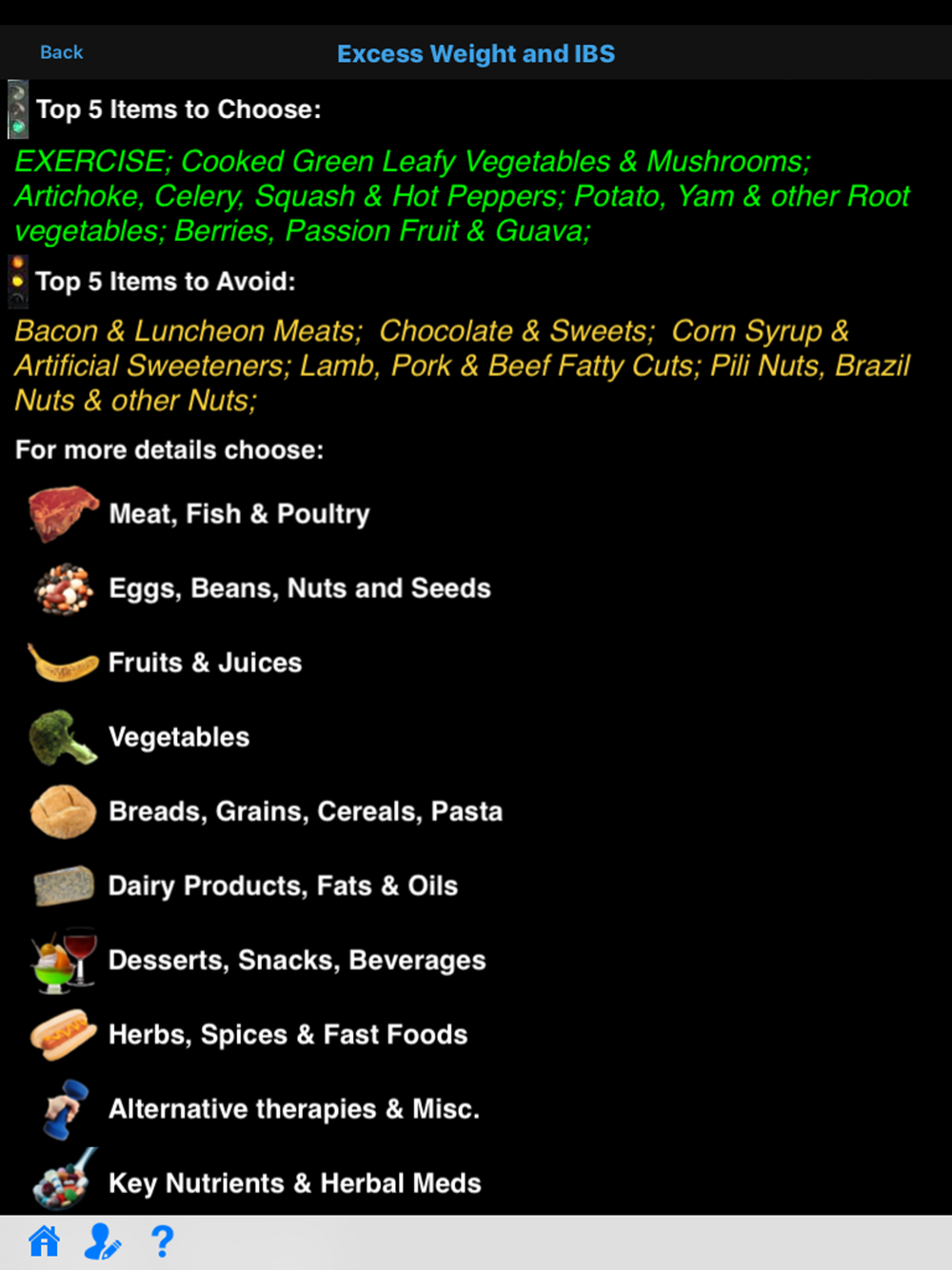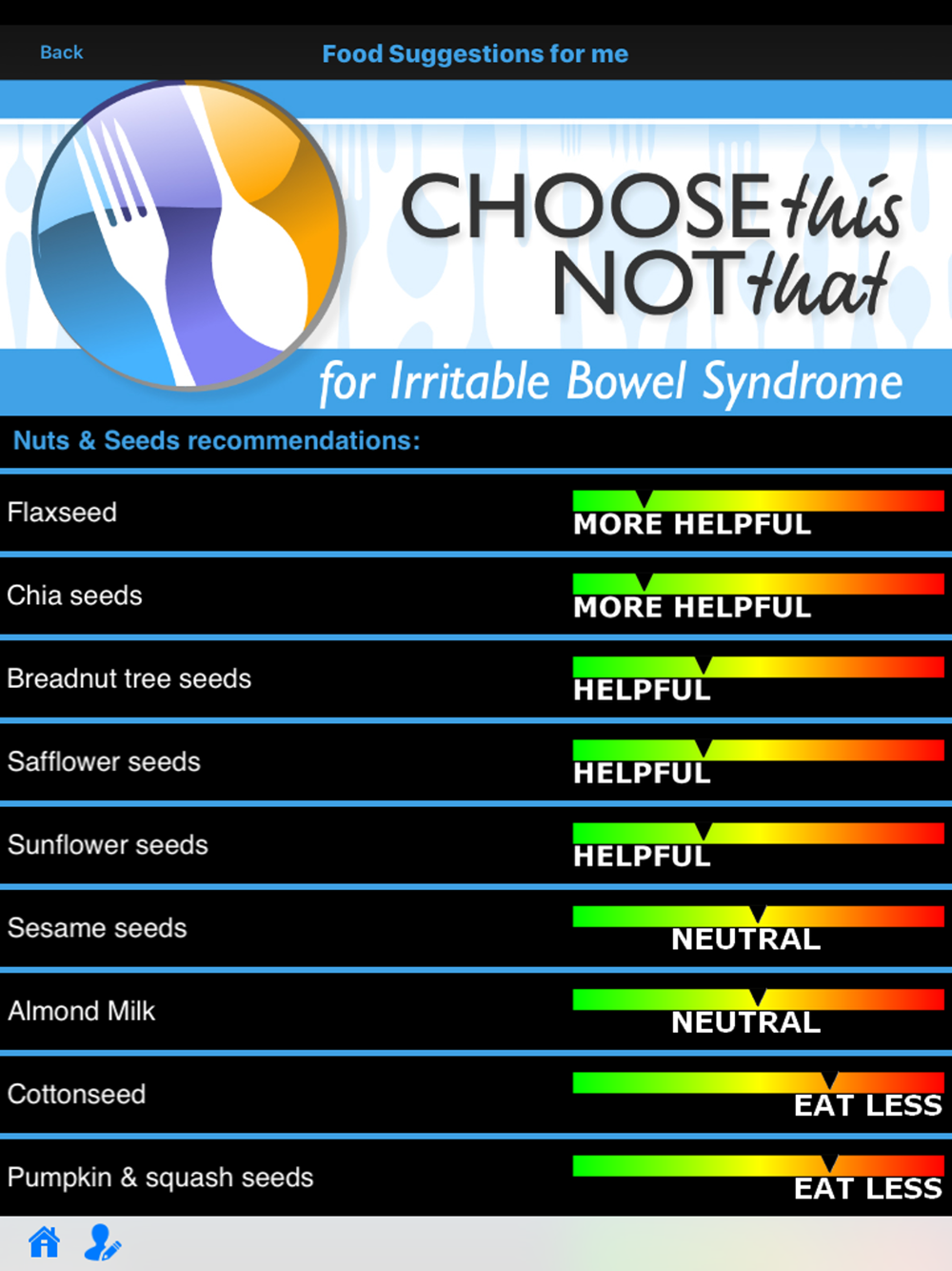 Choose This not That for IBS. Inside this colorful app, you will find easy to follow suggestions on how to improve your health through nutrition and the food choices you make every day. This app provides comprehensive and actionable nutrition guidelines for how to prevent and reduce symptoms associated with IBS.