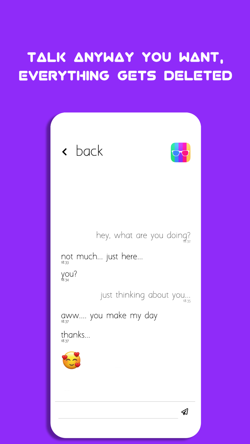 Add your friends by their own Tex-ID, and after you leave the chat, everything gets deleted. Block the users you don't like and share your Tex-ID only to the people you want.