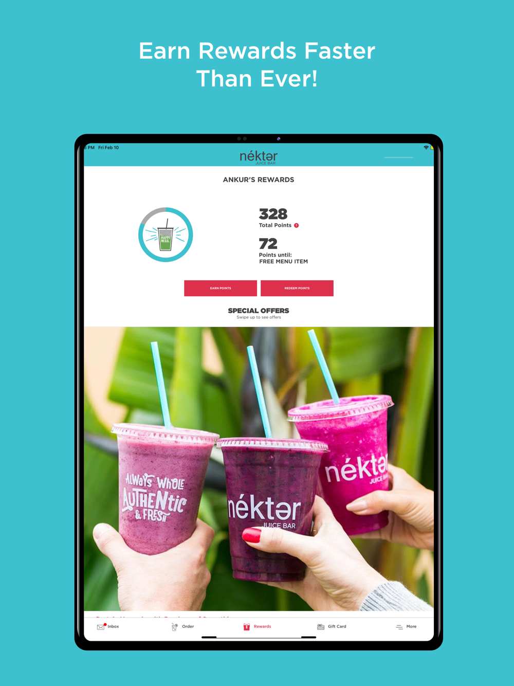 Sometimes we barely have enough time in our hectic lives to drink in the goodness of it all. Get a little escape in your day with the Nekter Loyalty App. “Live the Nekter Life” without the long lines that throw your busy schedule off balance--and collect some juicy rewards while you’re at it, too!