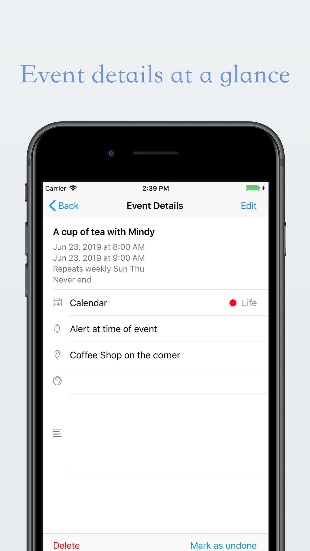Clean design and reminders ensures you never forget any Events, and reliable on your iPhone, iPad and iPod Touch.
