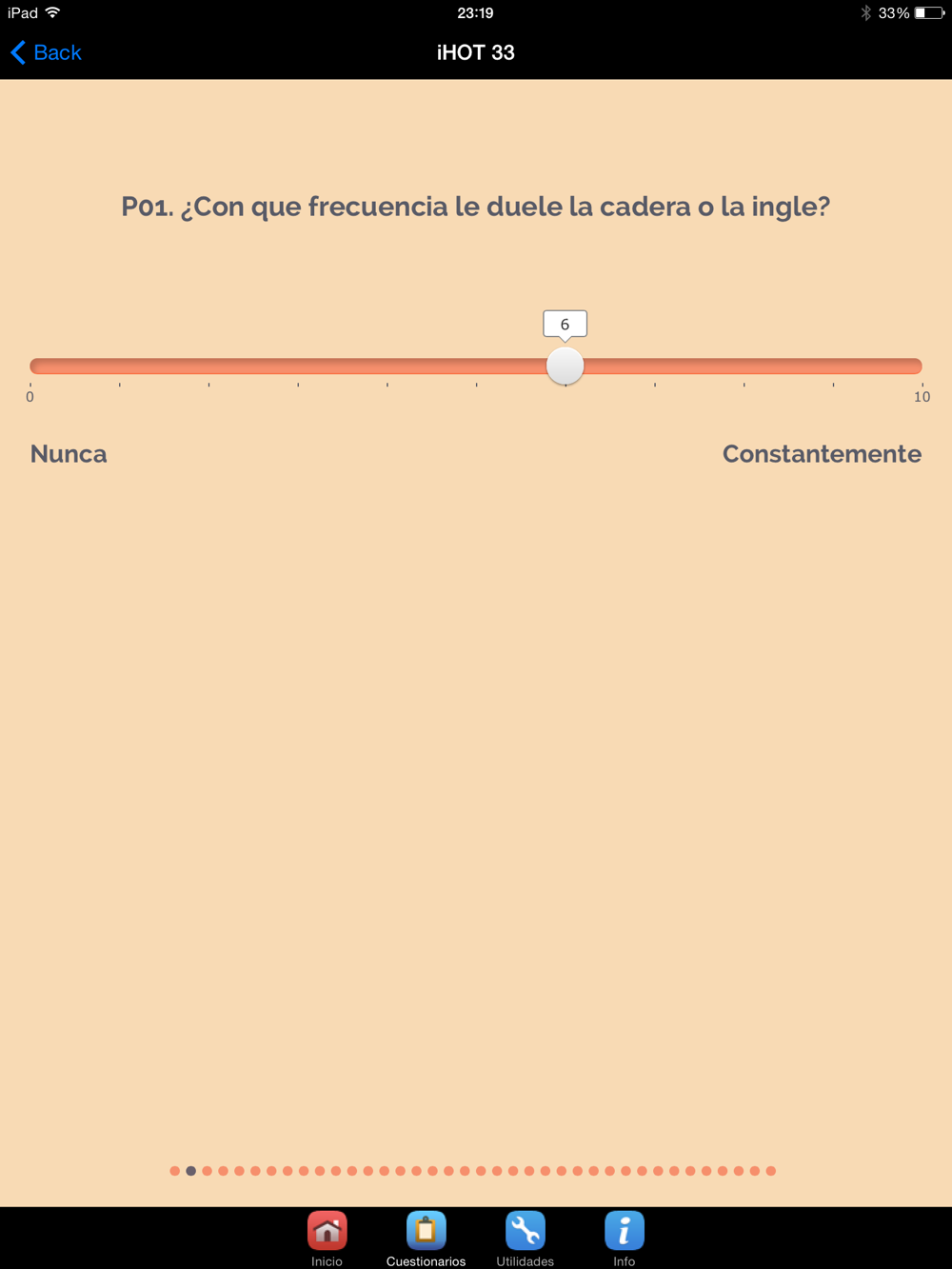 -Escala visual de dolor (el paciente desliza un cursor en función del grado de dolor y el resultado puede ser guardardado o enviado por email).