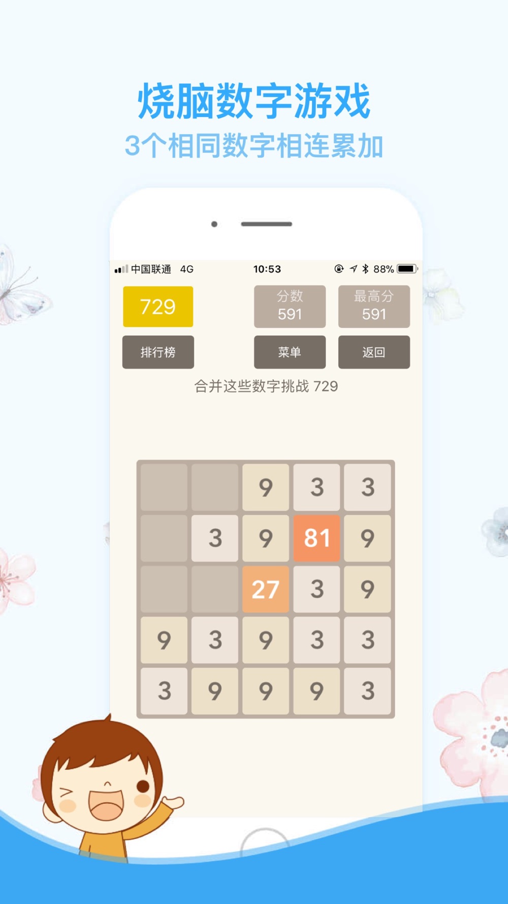史上最难的益智游戏挑战挑战729,一个比2048更有挑战性的游戏。每3个相同的数字可以合成一个新的数字,挑战合成一个729数,目前仅仅有5人挑战成功。
