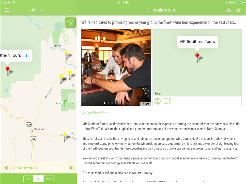 This app provides detailed information on all Unicoi Wine Trail wineries, tasting rooms and events throughout the year. It also includes high resolution pictures, a detailed map of winery locations, GPS maps, GPS triggered alerts, links to each wineries’ website and an informative Unicoi Wine Trail video.