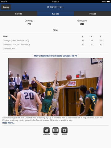 Created by PrestoSports in partnership with SUNY Geneseo, Front Row gives fans access to score updates, statistics and game recaps.