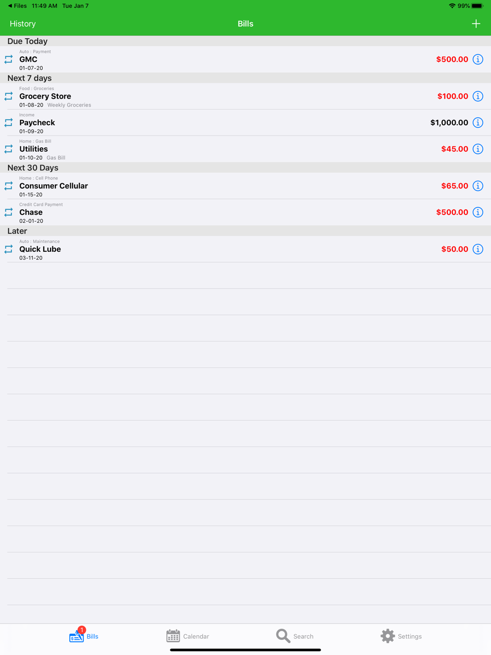 - Bills that offer flexible scheduling and reminding of due bills all based on your preference.