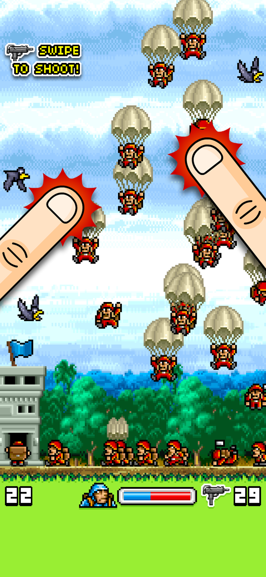 Fight off swarm of red army from taking over your tower. Blue army will be sent from time to time to defend your tower from taking over by the red army. Shoot the red army as fast as possible and avoid shooting the blue army.