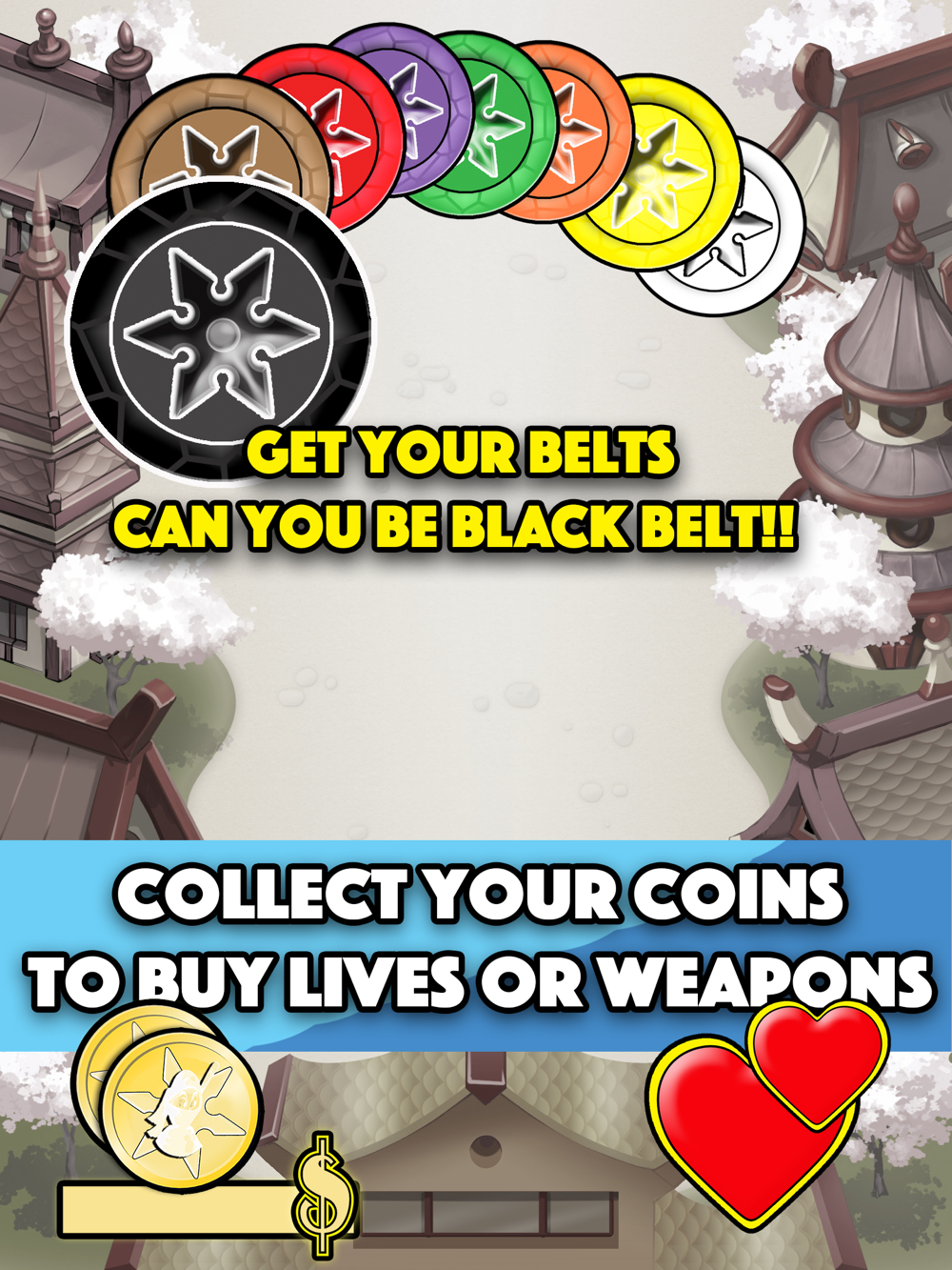 These little cute Ninjas are no innocent! they will drive you nuts! Slash them with your stars, prevent them from crossing to the end line, many Ninjas with hidden secret abilities are waiting for you to defeat. Collect coins along the way, buy more lives and upgrade your stars to more powerful Red and Black Stars! Compare your score to your friends on leaderboard; kill more ninjas to achieve your belt status all the way from white belt up to the black belt.