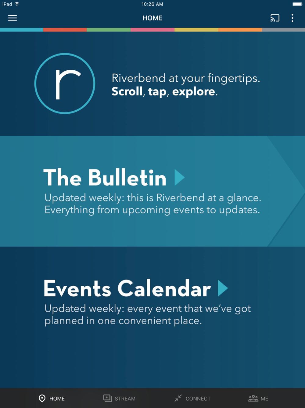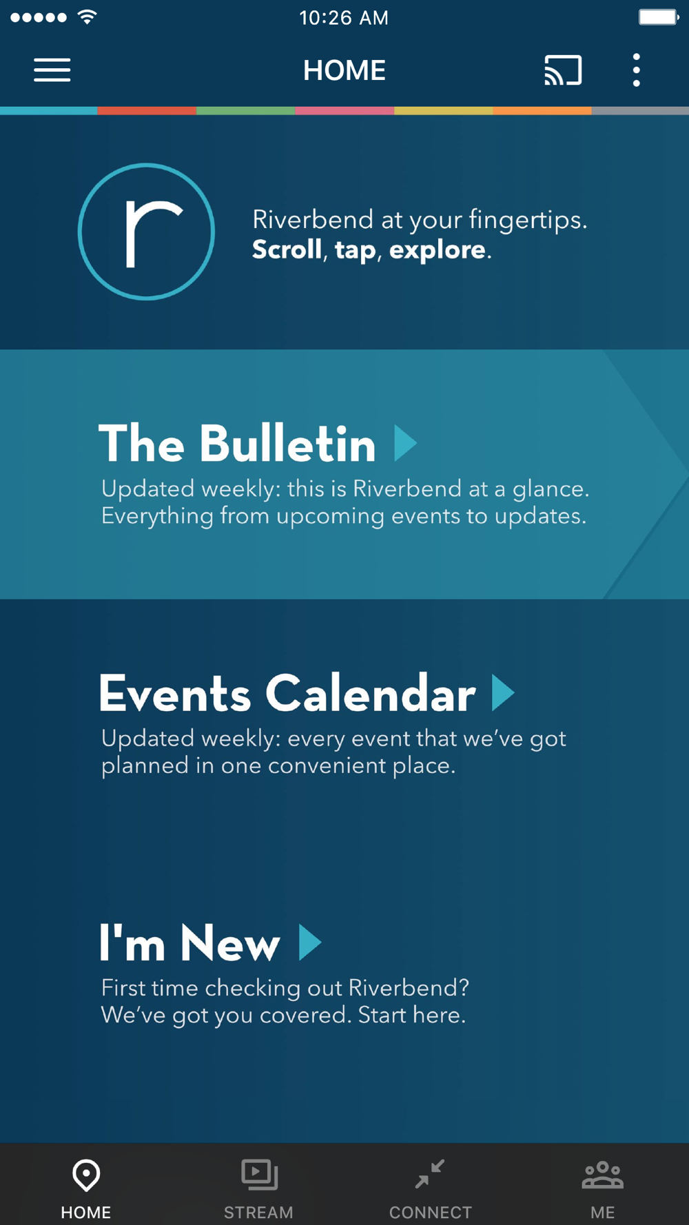 Here at Riverbend Church our message is simple: come just as you are and experience God's grace. It doesn't matter where you are on your journey — rich or poor, young or old, committed Christian or spiritually curious — you are welcome at Riverbend Church. We invite you to experience our services through our app!