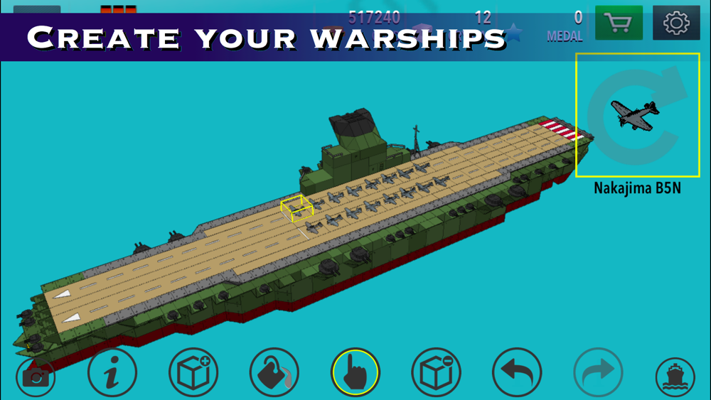 In "Warship Craft", you create your own Warship with 3D and physics simulation, and have your Warship in an open water ocean warfare competing against others via Game Center. Build the strongest Warship in the world - Check out the Leader Board!