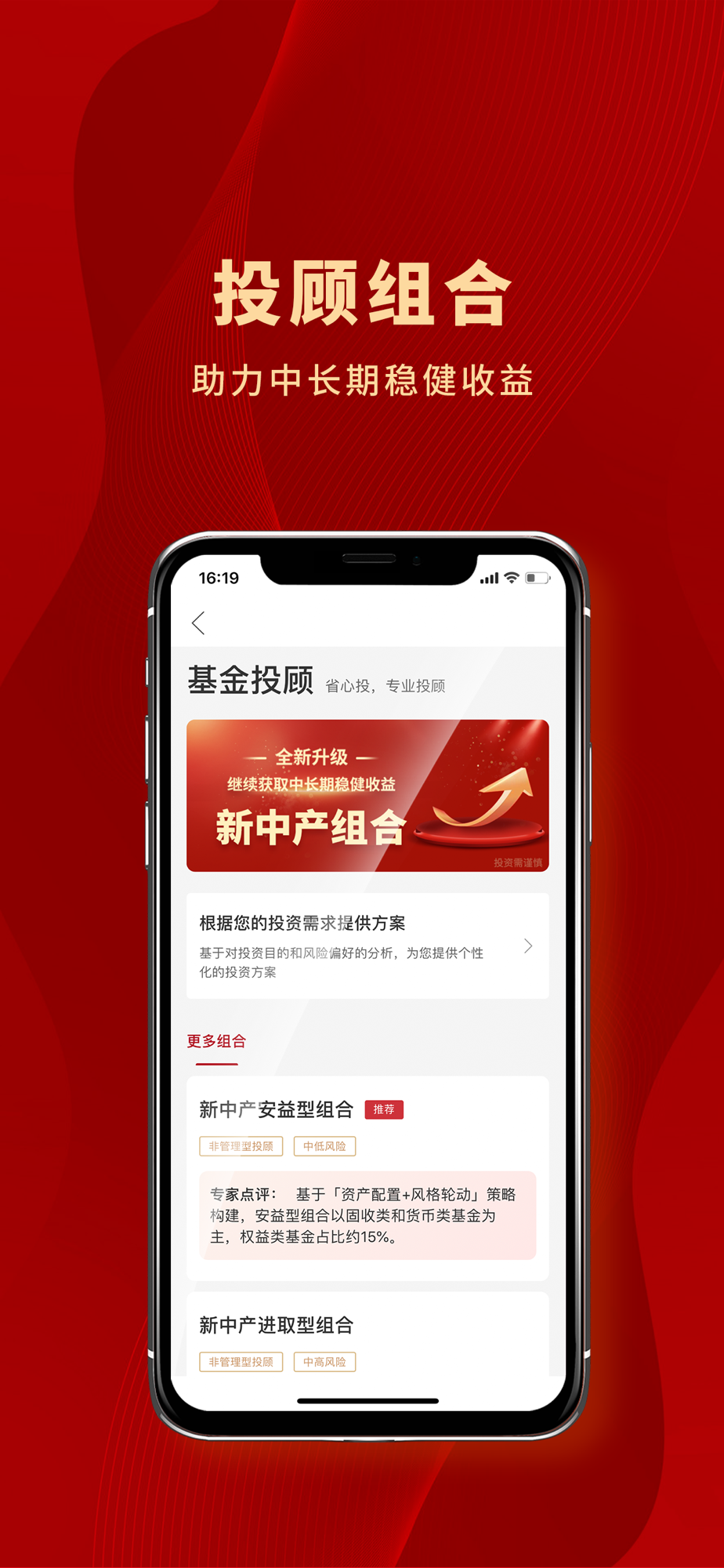 基金投顾组合:通过对应的投资策略优选公募基金构建投资组合,并会根据市场变化和组合表现帮投资者调仓,让您在承担合理风险的前提下,实现中长期稳健收益。