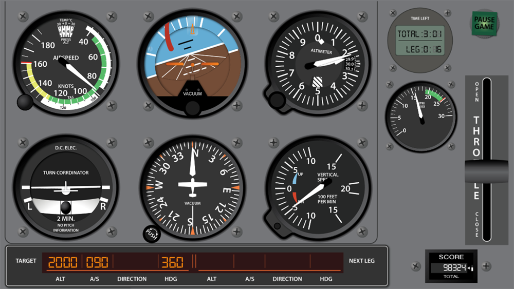 Practice and hone your IFR instrument scanning skills while playing a variety of courses “On Instruments”.