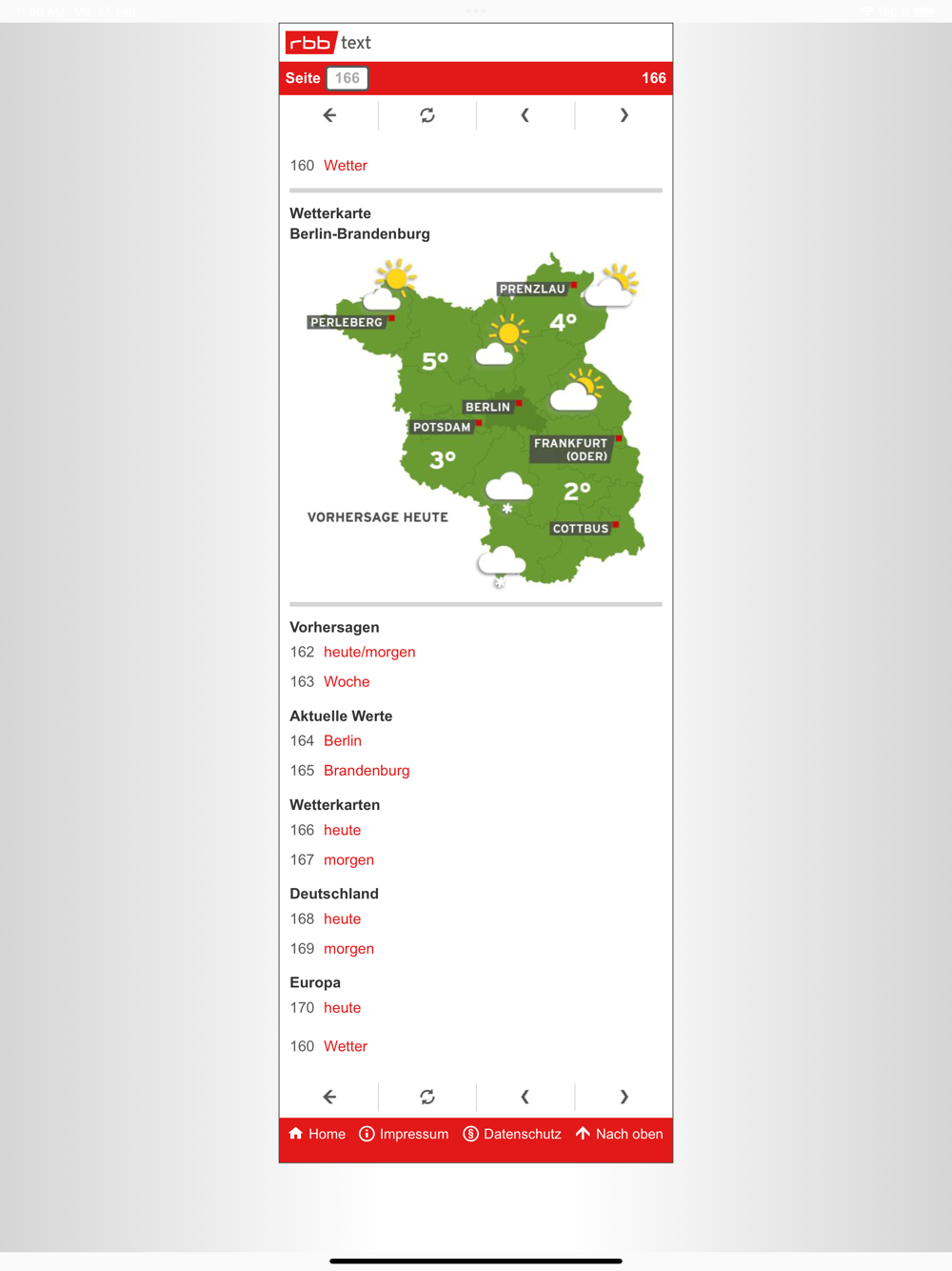 Damit Sie auch unterwegs immer gut informiert sind, bieten wir die Mobilversion rbbtext auch als App an. Wie haben Hertha, Union oder Alba gespielt, wie wird das Wetter zuhause oder beim Ausflug, wie sind die aktuellen Lottozahlen, was läuft heute Abend im rbb? Alles jederzeit auf Ihrem Handy.