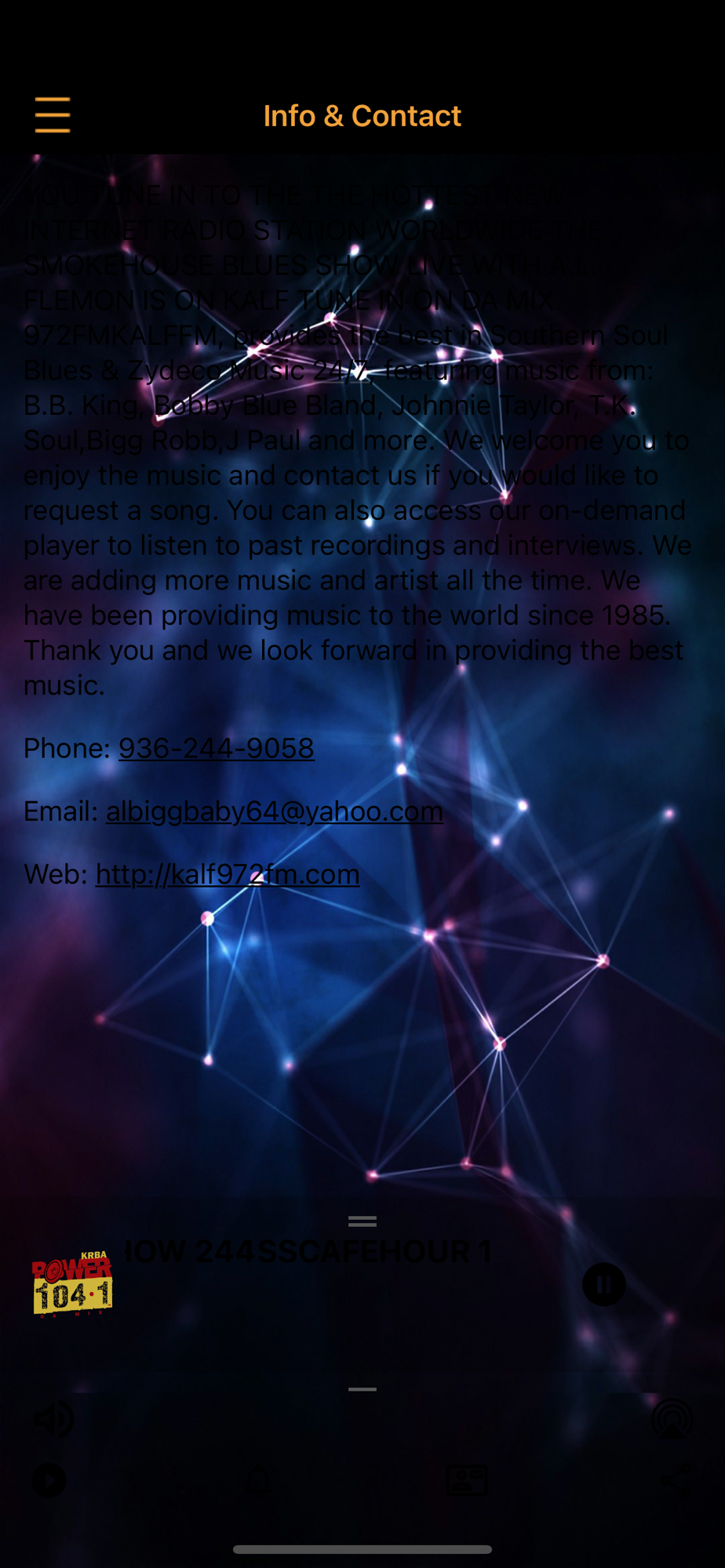 KALFFM, provides the best in Southern Soul Blues & Zydeco Music 24/7, We welcome you to enjoy the music and contact us if you would like to request a song. We are adding more music all the time. We have been providing music to the world since 1985. Thank you and we look forward in providing the best music.