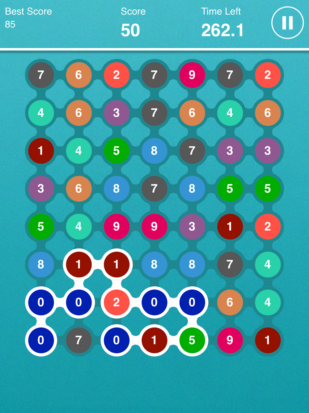 Connect 10 is a very addictive math puzzle game. You swipe to connect numbers to a total value of 10. Connect as many as possible in limited time.