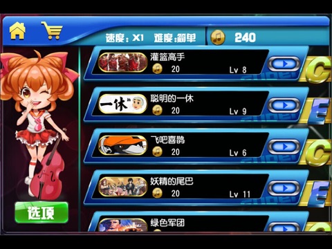 游戏分为三种难度(简单,普通,困难),4种速度(x1,x2,x3,x4) 以适应每一位玩家的水平。